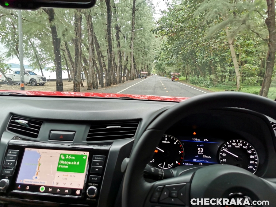 นิสสัน นาวารา PRO2X ด้านการใช้งานผู้เขียนได้นำมาขับเสมือนการใช้งานจริง 3 วันและบันทึกภาพนิ่งและคลิปอีกวัน การขับใช้งานมีทั้งในเมืองและเดินทางไกล ตลอดจนกลางวันและกลางคืน เพื่อให้ครอบคลุมใกล้เคียงความเป็นจริงของการใช้รถแบบครอบครัว จากข้อมูลเบื้องต้น นิสสัน นาวารา PRO2X รุ่นที่นำมาทดสอบยังคงใช้ขุมพลังเครื่องยนต์ดีเซลทวินเทอร์โบ YS23DDTT ความจุ 2.3 ลิตร เกียร์อัตโนมัติ 7 สปีด พร้อมโหมดแมนนวล ให้กำลังสูงสุด 190 แรงม้า แรงบิดสูงสุด 450 นิวตันเมตร มั่นใจได้ว่าเพียงพอต่อการใช้งานทางไกล ที่มักต้องมีการใช้อัตราเร่งแซง รวมไปถึงการใช้แรงบิดที่ดีในการขับขึ้นทางลาดชันแม้ว่าตัวรถมีโหลดเยอะ สัมผัสแรงหลังเข้าไปนั่งปรับระยะเบาะให้เข้ากับสรีระผู้เขียนที่สูง 171 ซม. รู้สึกได้ถึงความโปร่งและหรูหรา งานประกอบที่ดี เกรดของวัสดุชิ้นงานภายในให้อารมณ์เหมือนรถซีดานพรีเมียม ไม่เหมือนนั่งอยู่ภายในรถกระบะ ก่อนขับก็ได้ลองระบบการเชื่อมต่อบลทูธกับสมาร์ทโฟนผ่าน NissanConnect สแตนบายด์การรับ-วางสายโทรเข้า และพลาดไม่ได้กับฟังชันที่เชื่อมต่อกับ Apple CarPlay และ Android Auto ซึ่งสมาร์ทโฟนของผู้เขียนเป็นแบบแอนดรอยด์ พอใช้สายเชื่อมต่อผ่านพอร์ท USB ก็ใช้งานได้หลากหลายขึ้นไปอีกเพราะสามารถดึงแอปพลิเคชันของโทรศัพท์ออกมาใช้บนหน้าจอสัมผัสขนาด 8 นิ้วได้ เช่น ระบบนำทาง (Navigation system) กูเกิ้ลแมพ อันนี้เป็นแอปฯ จำเป็นของคนใช้รถจริงๆ นอกจากนี้ก็เปิดแอปฯ Spotfy เล่นชุดเพลงโปรดที่บันทึกไว้ เสียงที่ขับออกมาจากลำโพงติดรถนับว่าดีพอสำหรับผู้ใช้งานทั่วไปเลย สรุปความรู้สึกที่เข้ามานั่งแล้วได้ลองเล่น ทำความคุ้นเคยกับฟังก์ชัน หน้าจอ และปุ่มปรับต่างๆ รู้สึกพอใจที่สุดเพราะใช้งานง่าย มีทุกสิ่งอำนวยความสะดวกให้ครบครัน
