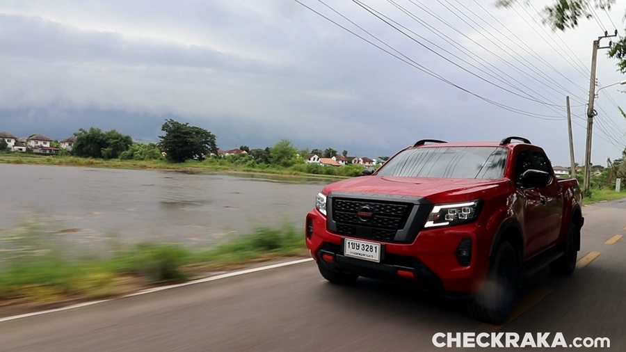 ด้านการขับเริ่มจากในเมืองที่มักใช้ความเร็วต่ำ-ปานกลาง และชะลอหยุด เดินเบา เลี้ยวบ่อยครั้งพบว่า มุมมองด้านหน้า กล้องหลัง และระบบเตือนต่างๆ ที่ทำงานร่วมกันเพื่อความปลอดภัยช่วยให้ขับได้ผ่อนคลายมากขึ้น เทคโนโลยีที่ติดตั้งมาให้ในรุ่นนี้ ยกระดับสแตนดาร์ดรถกระบะยุคใหม่แตกต่างไปจากเดิมมากเหลือเกิน ช่วงรถติดหรือขับผ่านถนนที่มีความพลุกพล่านวุ่นวายจากสิ่งรอบข้าง ภายในห้องโดยสารก็ยังให้ความเป็นส่วนตัวที่ดีมากๆ ฟังเพลงได้ราบรื่นไม่ถูกรบกวนจากเสียงภายนอก ระบบเบรกและช่วงล่างให้ความรู้สึกที่ดีเกินคาด ไม่มีอาการเต้นสะท้านจากแชสซีส์ให้รู้สึกรำคาญ เบรกความเร็วต่ำก็ให้ความรู้สึกตอบกลับที่ง่ายต่อการให้น้ำหนักเบรกที่เที่ยงตรงดั่งใจ ส่วนการขับทางไกลผู้เขียนใช้เส้นทางจากกรุงเทพฯ - ระยอง ใช้เส้นทางมอเตอร์เวย์เป็นหลักในการเดินทาง มีผู้โดยสารเต็มทุกที่นั่งแบบ 2+3 พร้อมสัมภาระที่กระบะท้าย เสมือนครอบครัวท่องเที่ยว เส้นทางเป็นออนโร้ดตลอด การขับแบบใช้ความเร็วได้ต่อเนื่องผ่อนคลายกับการใช้ครูซคอนโทรล และเบาะที่นั่งสบายได้นานโดยไม่เมื่อยล้า ระบบช่วยเหลือและความปลอดภัยที่เข้ามาแทรกแซงและเสริมได้อย่างถูกจังหวะทำให้การขับมีความปลอดภัยและสบายใจมากขึ้น การเร่งแซงรถช้าพลังจากเครื่องยนต์ ตลอดจนการขับเข้าโค้งความเร็ว แสดงถึงสมรรถนะเครื่องยนต์ YS23DDT และช่วงล่างของนาวารา PRO2X ได้ชัดเจนมากขึ้น รู้สึกได้ถึงความมั่นใจของพลังแรงบิด ที่ชอบคือการทำงานของระบบเกียร์ 7 สปีด ที่ฉลาดพอเปลี่ยนได้อย่างถูกจังหวะและราบรื่น โดยรวมแล้วเป็นรถกระบะที่ใช้เป็นรถหลักของครอบครัวได้อย่างไม่เคอะเขิน ระยะรวมที่ขับไปทั้งหมด 845 กม. อัตราสิ้นเปลืองบนหน้าจอแสดงตัวเลขที่ 12.7 กม./ล. ด้วยราคาที่ต่ำล้านกับการเป็นรถกระบะ 4 ประตูขับสองยกสูงแต่งพิเศษที่สวยลงตัวทั้งภายนอกภายใน และครบครันด้วยระบบช่วยเหลือ ความปลอดภัย อำนวยความสะดวก และถอยตอนนี้มีข้อเสนอพิเศษที่น่าสนใจไม่น้อยเช่น ผ่อนเริ่มต้น 7,100 บาท, ดอกเบี้ยต่ำพิเศษ 0.59 % ฯลฯ ส่วนตัวมองว่า นาวารา PRO2X สามารถตอบโจทย์การเป็นรถครอบครัวของพ่อบ้านสายแอดเวนเจอร์ได้ดีทีเดียว