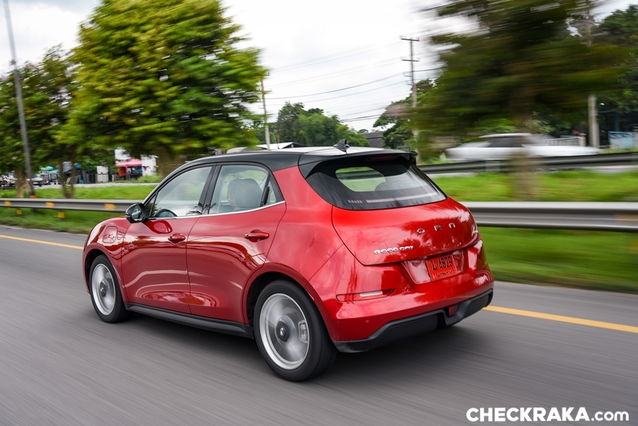 อัตราเร่งแซงนั้นก็มาเร็วแบบไม่รอรอบและพุ่งไต่ระดับอย่างเร้าใจ ทั้งการเร่งในช่วงความเร็ว 60 - 100 กม./ชม. หรือ 100 กม./ชม. ขึ้นไปยาว ๆ ก็ใช้เวลาสั้น ๆ เท่านั้น ประกอบกับช่วงล่างที่หนึบเกินคาด จากที่เคยทดสอบรถยนต์ไฟฟ้าหลายรุ่นนั้น ช่วงล่างจะออกไปทางนิ่มและยวบเพราะน้ำหนักแบตฯ และระบบไฟฟ้า แต่เจ้าแมวเหมียวรุ่นนี้กลับทำน้ำหนักตัวได้เบาและบาลานซ์ระดับหนึ่งจากเพลตฟอร์ม "GWM LEMON E PLATFORM" สร้างมาสำหรับใช้งานกับรถไฟฟ้า (BEV) โดยเฉพาะ