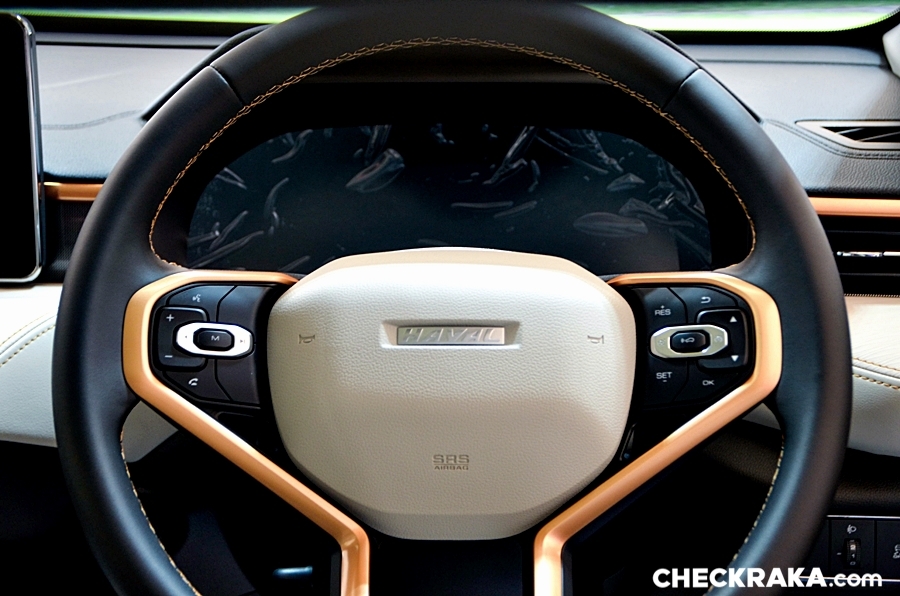 และไฟท้าย LED พร้อมไฟเบรกดวงที่สามและไฟตัดหมอกหลังแบบ LED ด้านหน้าของรถเป็นกระจังหน้า Star Matrix สีดำ-เทา ที่โดดเด่นด้วยโลโก้ HAVAL ตรงกลาง