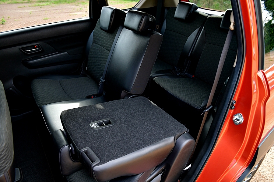 เบาะแถวที่ 2 นั้น น่าจะมีการนั่งเวลาเดินทางทั้งครอบครัวบ่อย ๆ ในความกว้างขวางและปรับเลื่อนหน้า-หลังได้ แถมยังปรับเอนเบาะพิงได้มากอีกด้วย ส่วนเบาะแถวที่ 3 อาจเป็นเบาะใช้วางของและที่นั่งสำรองเผื่อผู้โดยสารเกิน 5 คน โดยส่วนตัวแล้วระบบช่วงล่างถือว่ารองรับและซับแรงกระเด้งได้ดี นั่งสบายไม่ถึงกับนุ่มนวลเพราะมีความแข็งเล็กน้อยเพราะปรับช่วงล่างยกสูงขึ้น แต่ไม่โยนเวลาเปลี่ยนเลน โดยรวมนับว่าสบายตัวไม่เขย่าและดีดเท่าไหร่เมื่อผ่านผิวถนนขรุขระครับ