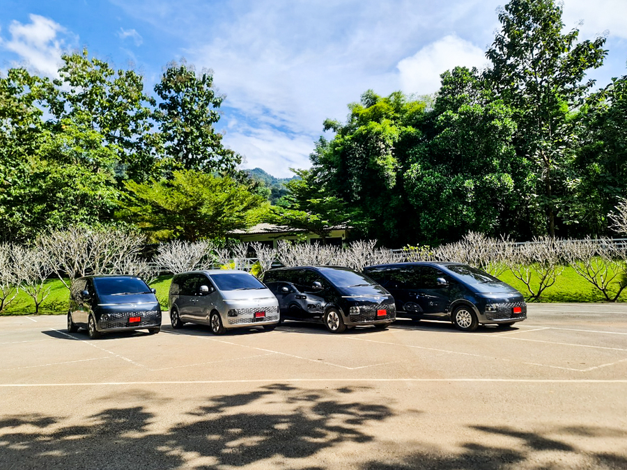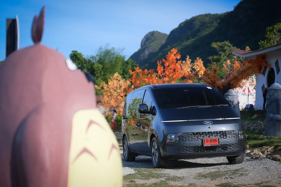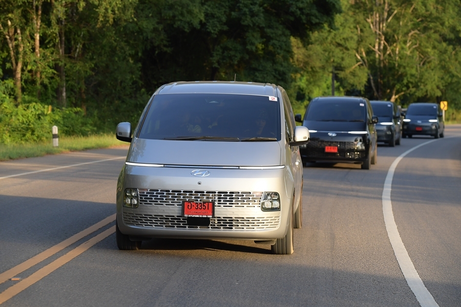 สำหรับภารกิจที่เราได้รับมอบหมายให้ไปทดสอบเจ้าฮุนได สตาร์เรีย กรุงเทพฯ - กาญจนบุรี ระยะทางกว่า 250 กิโลเมตร ก่อนอื่นขอแนะนำจุดเด่นภาพนอกรอบคันของรถยนต์ ฮุนได สตาร์เรีย กันอีกสักรอบ เจ้าหน้ากลมๆ ของ ฮุนได สตาร์เรีย ตั้งแต่ชุดไฟหน้า เป็น LED มัลติรีเฟล็กเตอร์ (ไฟที่มีการหักเหของแสงทำให้สาดส่องนุ่มนวล) กระจังหน้าเรียบหรู พร้อมไฟ Day time ฝังติดซ้าย-ขวา เส้นสายของไฟเห็นเป็นตาเล็กๆ แต่ส่วนที่ผู้เขียนชอบและทึ่งกับมันมากที่สุด ก็คือเจ้าไฟท้ายของ สตาร์เรียที่มาแบบ Parametric Pixel LED เป็นดวงกลมๆ เม็ดเล็กๆ ที่ติดด้านท้ายทั้งแผง เห็นชัดแต่ไกล เวลาเปิดไฟเลี้ยวจะเห็นวิ่งเป็นเม็ดๆ เรียงกันสวยงาม (แต่ไฟเลี้ยวอยู่ต่ำไปหน่อย ถ้ารถสูงๆ แบบรถบรรทุกอาจไม่ค่อยเห็นถ้าเราเปิดไฟเลี้ยวอยู่) และที่ชอบมากถือว่าเป็นจุดช่วยให้รถคันนี้ดูใหญ่!! นั่นคือคือกระจกบานข้างรอบคันหรือเขาเรียก Panoramic Side Window ถือว่าเป็นจุดนำสายตาให้ความรู้สึกว่าภายในโปร่ง กว้าง (และก็เป็นแบบนั้นจริงๆ ค่ะ)