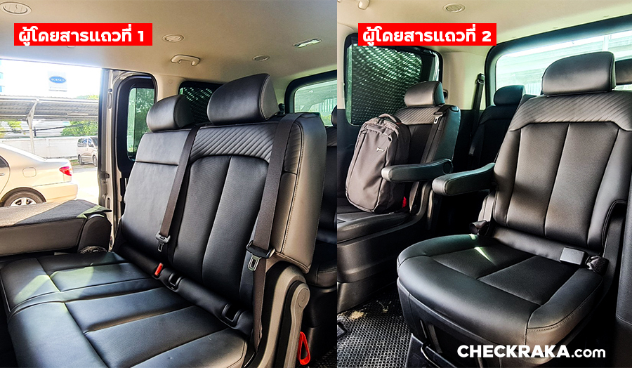 หลังจากเข้าฟังคำบรรยายในช่วงเช้าก็ได้เวลาที่เราจะออกเดินทางจากจุดสตาร์ทที่ บริษัท ฮุนได มอเตอร์ วิภาวดี - อำเภอไทรโยค จังหวัดกาญจนบุรี ระยะทางกว่า 250 กิโลเมตร ไม้แรกของผู้เขียนขอสัมผัสฟิลลิ่งเป็นคนนั่งก่อน ภายในของสตาร์เรียมีทั้งหมด 11 ที่นั่ง แบ่งแยก เลื่อน พับ ขยับได้หมด แต่ตอนยกหนักไปนิด และตอนปิดพับลงมาแรงไป (เด็กๆ ไม่ควรทำ) แต่เบาะทั้ง 3 แถว พับเบาะได้ 50:50 เอาที่นอนมาปูนอนได้เลยสบาย และคนตัวสูงก็ไม่มีปัญหาเรื่องขาติดเบาะ ในตำแหน่งเบาะนั้งแถว 2 ยังมีพนักแขน ช่องวางแก้วน้ำ ให้นั่งสบายๆ ม่านบังแดด และรูเสียบ USB 2 จุด (มีให้ทั้ง ซ้าย - ขวา) ในตำแหน่งนี้อีกด้วย ในเรื่องที่นั่งในห้องโดยสารให้ไปเลย 8/10 อาจจะมีที่นั่งแถว 1 ที่ไม่มีที่วางแขนซึ่งคนนั่งเดินทางไกลๆ อาจจะเมื่อยก็เป็นได้