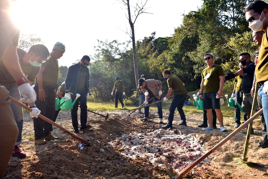 เมื่อถึงบ้านกร่างแคมป์ เจ้าหน้าที่อุทยานแห่งชาติแก่งกระจานได้ออกมาต้อนรับพร้อมให้ข้อมูลด้านต่างๆ เกี่ยวกับอุทยาน และพาทุกคนร่วมทำกิจกรรมจิตอาสาทำโป่งดินเทียมสำหรับสัตว์ป่า ทั้งนี้ ด้วยเนื้อที่ประมาณ 2.5 ล้านไร่ ครอบคลุมพื้นที่ป่าอนุรักษ์ 4 แห่ง ในจังหวัดราชบุรี เพชรบุรี และประจวบคีรีขันธ์ กลุ่มป่าแก่งกระจาน ถือเป็นแหล่งต้นน้ำที่สำคัญของแม่น้ำหลายสายในประเทศไทย และยังเป็นป่าผืนใหญ่ที่มีความอุดมสมบูรณ์ เป็นที่อาศัยของสัตว์ป่าน้อยใหญ่จำนวนมาก จนได้รับการขึ้นทะเบียนเป็นมรดกโลกแห่งที่ 6 ของประเทศไทย จาก UNESCO สำหรับกิจกรรมการทำโป่งเทียม เป็นการขุดดินให้เป็นแอ่งแล้วนำเกลือสมุทรมาเทผสมเพื่อเสริมแร่ธาตุและวิตามินให้กับผืนดินเพื่อเป็นแหล่งอาหารในพื้นที่ เมื่อสัตว์ป่าน้อยใหญ่เข้ามาหากินบริเวณโป่งก็จะได้รับสารอาหารเพิ่มเติม อีกทั้งยังเป็นการอนุรักษ์และฟื้นฟูทรัพยากรป่าไม้ให้มีความอุดมสมบูรณ์อีกด้วย