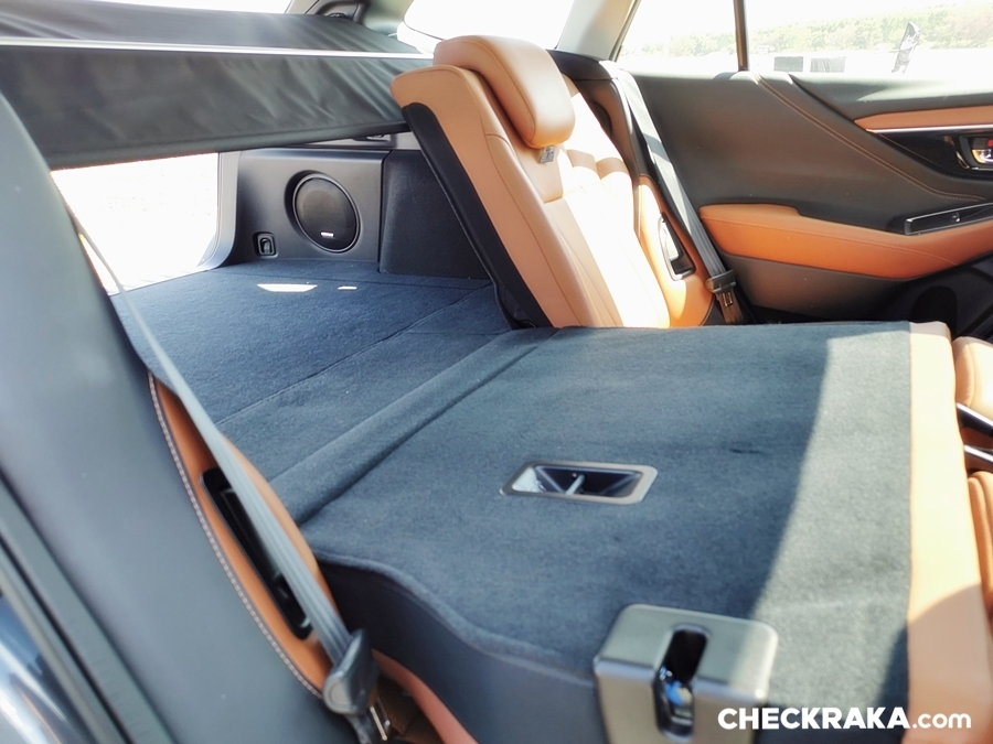 ท่านั่งการขับขี่เบาะคนขับนุ่มนวลสบายรองรับสรีระได้อย่างดี ความจริงก็นั่งสบายทุกตำแหน่งเลยครับ โดยเฉพาะผู้โดยสารด้านหลังที่มีพื้นที่กว้างขวาง ระดับเบาะพิงหลังเอนกำลังดีไม่ตั้งชันหรือเอนมากไปเสียดายที่ปรับระดับเอนไม่ได้เท่านั้น พื้นที่ขนสัมภาระหลังก็กว้างขวางยิ่งพับเบาะแบนราบก็เพิ่มพื้นที่ได้อีกเยอะเลยครับ จะขนถุงกอล์ฟกระเป๋าเดินทางใบโตรวมถึงใช้เป็นเตียงนอนยังได้เลย และประตูท้ายไฟฟ้าที่มีระบบ Hand-Free เพียงเดินเข้ามาให้บริเวณมือหรือแขนเข้าใกล้กับเซนเซอร์ที่ติดตั้งตรงโลโก้ "SUBARU" ประตูก็จะเปิดให้อัตโนมัติซึ่งสะดวกกว่าต้องใช้เท้ากวาดใต้กันชนที่บางรุ่นนั้นกวาดจนแทบลมจับก็ยังเปิดไม่ได้........