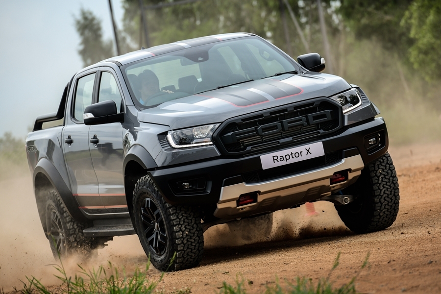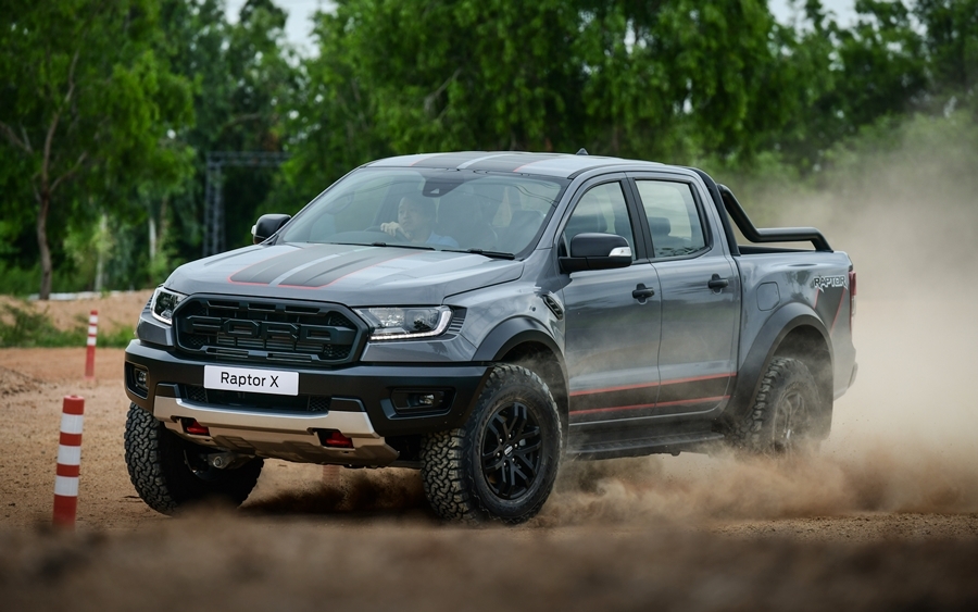 ฟอร์ด เรนเจอร์ แร็พเตอร์ เอ็กซ์ (Ford Ranger RaptorX) รถกระบะเพื่อการลุยตัวจริงมาพร้อมระบบกันสะเทือนสไตล์รถแข่ง ระยะล้อที่กว้างขึ้นและแชสซีที่เสริมความแข็งแกร่งมาเป็นพิเศษ พร้อมดีไซน์สไตล์สปอร์ตด้วยสติกเกอร์กราฟฟิกสไตล์ ‘Over the Top’ รอบคัน เพิ่มความดุดันด้วยชุดแต่งสีดำพร้อมโรลบาร์แบบยาว ชุดหูลากหน้ารถสีแดงสไตล์สปอร์ต นอกจากนี้ยังมีโหมด 6 การขับขี่ โดยเฉพาะโหมดบาฮา (Baja) นับเป็นรถกระบะเจ้าเดียวในไทยที่มีให้ในปัจจุบัน