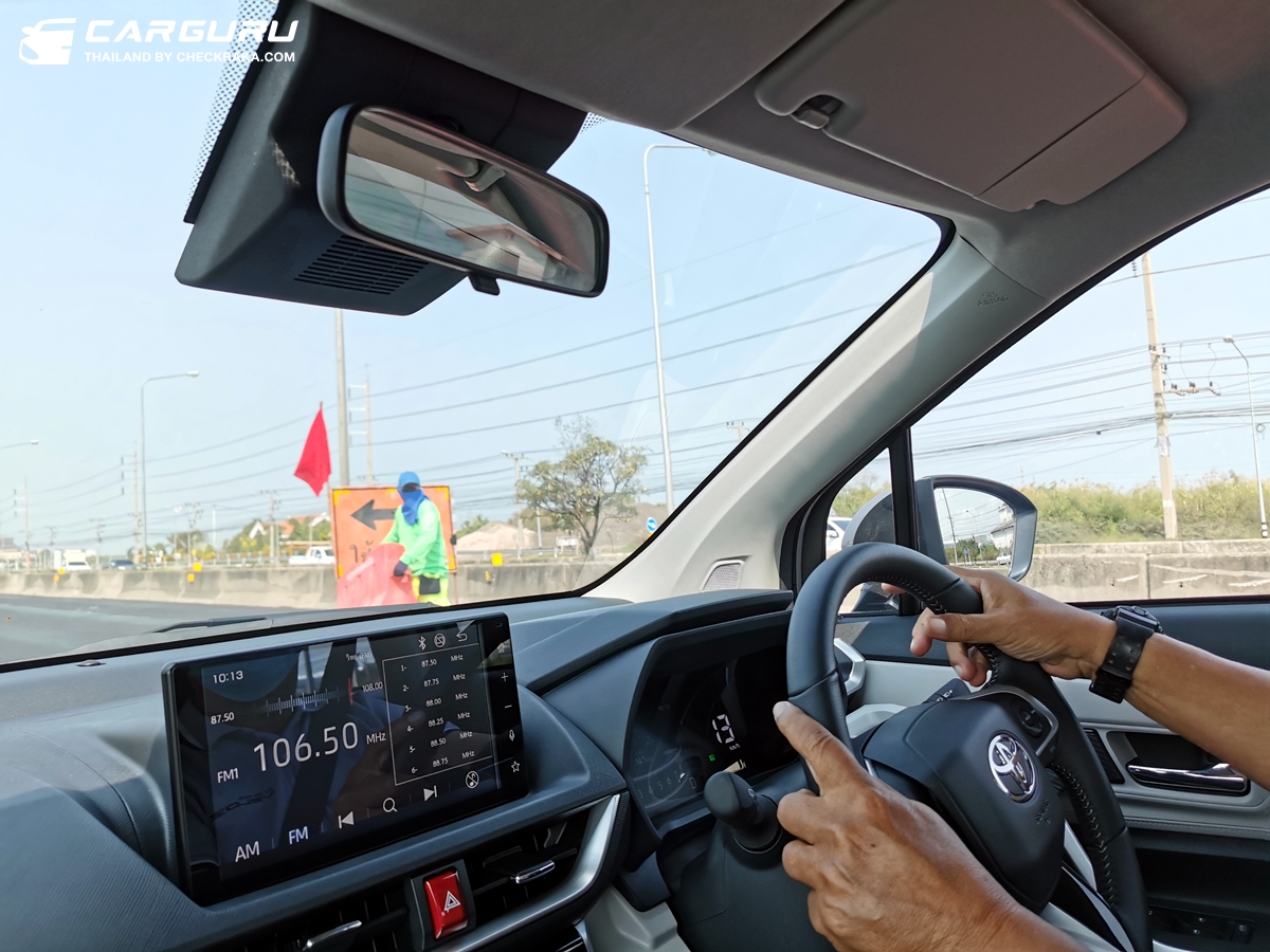 เริ่มจากความรู้สึกในตำแหน่งผู้โดยสารด้านหน้า ตำแหน่งเบาะสูงมองเห็นถนนด้านหน้าได้กว้างไกลรับกับผู้เขียนที่สูง 171 ซม. เบาะหนังผสมให้สัมผัสที่ดีพอควร ภายในห้องโดยสารกว้างขวาง พื้นที่กระจกรอบตัวเยอะรู้สึกปลอดโปร่ง เสาเอวางตำแหน่งดีไม่บดบังสายตาเวลามองเยื้องข้าง ระบบเฮดยูนิตเชื่อมต่อบลูทูธได้สะดวก หน้าจอสัมผัสขนาด 9 นิ้ว ออกแบบสวยดูดีมองเห็นไอคอนและข้อมูลชัดเจน อย่างไรก็ตามก็รู้สึกผิดหวังกับคุณภาพเสียงที่ออกจากลำโพงติดรถอยู่บ้าง เมื่อเทียบกับคุณภาพเสียงติดรถโตโยต้า วีออส รุ่นเก่า แต่จุดนี้สามารถมองข้ามได้เมื่อพิจารณาออปชั่นอำนวยความสะดวกที่จัดมาให้ครบครันเกินคลาส จุดที่ชอบส่วนตัวคือ ที่วางแก้วหรือขวดน้ำดื่มหน้าช่องแอร์ข้างซ้าย-ขวา ซึ่งช่วยรักษาหรือให้ความเย็นได้ในตัว เมื่อมาสลับนั่งขับจากที่ได้ลองทั้ง 2 วันไป-กลับ ส่วนใหญ่เป็นการขับทางไกลใช้ความเร็วได้ สลับช่วงเข้าเมืองที่รถติดต่อเนื่องจากถนนพระราม 2 ไปจนถึงบางนาพอสรุปได้ว่า การขับช่วงในเมืองหรือใช้ความเร็วต่ำแบบรถติด พบว่าตัวรถให้ความสบายในการขับแบบออกตัวเร่งหยุด เบรกที่ความเร็วต่ำให้ฟิลลิ่งตอบกลับดีผสานการทำงานกับช่วงล่างที่เก็บอาการตัวถังได้ดีพอสมควร ช่วงเร่งออกตัวแม้เป็นเกียร์ CVT ก็ยังให้ความกระฉับกระเฉงไม่มีอาการแลคจนรู้สึก อย่างไรก็ตามถ้าเร่งหนักตั้งแต่ต้นก็ต้องแลกด้วยเสียงการทำงานที่ดังเข้าห้องโดยสารพอสมควร แต่ถ้าเดินคันเร่งแบบค่อยเป็นค่อยไปก็ไม่รู้สึกอะไรมาก ส่วนการขับบนถนนเปิดโล่งพบว่าตัวรถสามารถเร่งทะยานใช้ความเร็วไปได้เกิน 120 กม./ชม. ได้สบาย การยกและเติมคันเร่งขณะทำความเร็วทำได้ไหลลื่นดี จริงๆ ไม่อยากกดเร่งมาจนดึงรอบลงมาเรียกแรงบิด เพราะทำให้เสียงการทำงานดังมากขึ้น การชะลอเบาเบรกจากความเร็วระดับ 80-120 กม./ชม.ให้ความรู้สึกค่อยๆ หน่วงลงนุ่มนวลอยู่ โดยรวมก็พอใจกับสมรรถนะการขับในทริปนี้ และประทับใจกับการลองระบบต่างๆ ไม่ว่าจะเป็น ระบบเตือนเมื่อรถคันหน้าเคลื่อนตัว (Front Departure Alert), ระบบป้องกันการเหยียบคันเร่งแบบผิดวิธี (Pedal Misoperation Control), ระบบเตือนเมื่อออกนอกเลนพร้อมพวงมาลัยดึงกลับอัตโนมัติ (Lane Departure Alert (LDA) With Steering Assist), ระบบความปลอดภัยก่อนการชน (Pre-Collision System), ระบบช่วยออกตัวบนทางลาดชัน (Hill-start Assist Control) ทั้งหมดล้วนสัมผัสได้จริงในการขับทริปนี้ทำให้มั่นใจ นอกจากนี้ยังชอบเรื่องของความอเนกประสงค์ที่เบาะพับได้มากถึง 7 แบบ อัตราสิ้นเปลืองของทริปนี้บนจอแสดงข้อมูลได้ตัวเลข 14.4 กม./ลิตร จึงคิดว่าโตโยต้า เวลอซ เป็นรถครอบครัว 7 ที่นั่งท