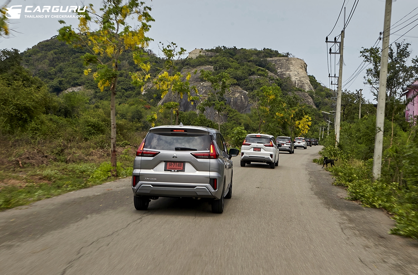 ทริปทดสอบใช้รถยนต์มิตซูบิชิ เอ็กซ์แพนเดอร์ ใหม่ รุ่น GT ทั้งหมดโดยผู้เขียนได้ขับร่วมกับเพื่อนสื่อมวลชนด้วยกันคันละ 2 คน สัมภาระติดตัวแค่กระเป๋าเดินทางใบเดียวไม่หนักมาก การทดสอบทยอยปล่อยรถจากโรงแรมย่านถนนสาทรมุ่งหน้าขึ้นทางด่วนสู่ถนนพระราม 2 ช่วงแรกผู้เขียนเป็นผู้นั่งข้าง สัมผัสแรกจากการนั่งบนรถไปถึงจุดพัก Porto go และต่อด้วยพักรับทานมื้อกลางวันที่ร้านในเมืองเพชรบุรี เบาะนุ่มนั่งสบาย งานประกอบภายในห้องโดยสารเรียบร้อยดูดี ช่องแอร์หลังคาทำเรียบร้อย โดยรวมให้ความรู้สึกที่ดี ช่องใส่ของรอบตัวมีมาก จอสัมผัสขนาดใหญ่รองรับระบบแอนดรอยด์ออโตกับแอปเปิ้ล คาร์เพลย์ได้ เพิ่มความสะดวกสบายในการเชื่อมต่อสมาร์ทโฟนและเล่นแอปพลิเคชันต่างๆ ได้ดี ในเอ็กซ์แพนเดอร์จัดว่าเชื่อมต่อง่ายและเสถียรไม่มีหลุดเลย อย่างไรก็ตามมุมเสาเอด้านหน้าที่ค่อนข้างสโลปเอียงลาดลงทำให้รู้สึกไม่ค่อยคุ้นชินเท่าไหร่กับรถอเนกประสงค์แบบนี้ ก็อาจทำให้ด้านนอกดูสปอร์ตสวย คุณภาพเสียงเพลงจากลำโพง 6 ตัวนับว่าน่าพอใจเมื่อเทียบกับคู่แข่งในตลาด ช่วงล่างซับแรงสะเทือนและให้การทรงตัวที่แน่นนิ่งไม่ย้วย ไม่โยนยามเข้าโค้งด้วยความเร็ว เสียงเครื่องยนต์จากการกดคิกดาวน์เร่งรอบความเร็วจัดว่าอยู่ในระดับที่รับได้ไม่ดังจนน่ารำคาญ จริงๆ ภายในห้องโดยสารจัดว่าเก็บเสียงได้ดีพอสมควร ช่วงจอดเปิดเอาของที่ฝาท้ายพบว่าตัวรถที่มีระยะเคลียร์แลนซ์จากพื้นสูง 220 มม. ทำให้การเปิดปิดฝาท้ายค่อนข้างลำบากสำหรับผู้เขียนที่สูง 171 ซม. นอกจากนี้ถ้าเข้าช่องจอดที่มีกำแพงและเพดานต่ำด้านหลังก็ต้องเผื่อระยะให้ฝาท้ายเปิดได้ด้วย รถสูง 1,750 มม. บวกระยะฝากระโปรงขึ้นไปอีก