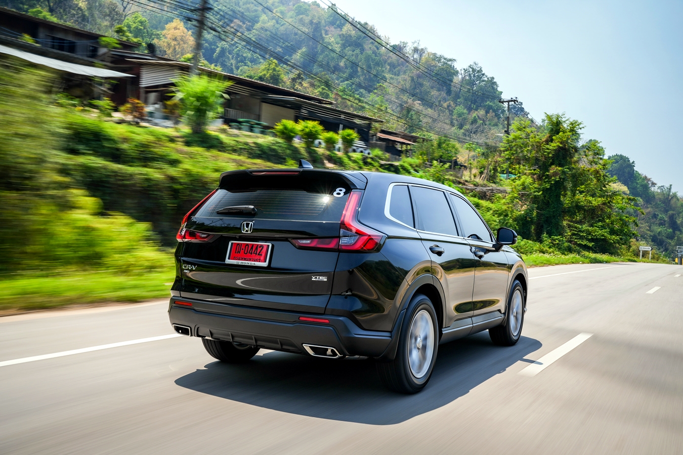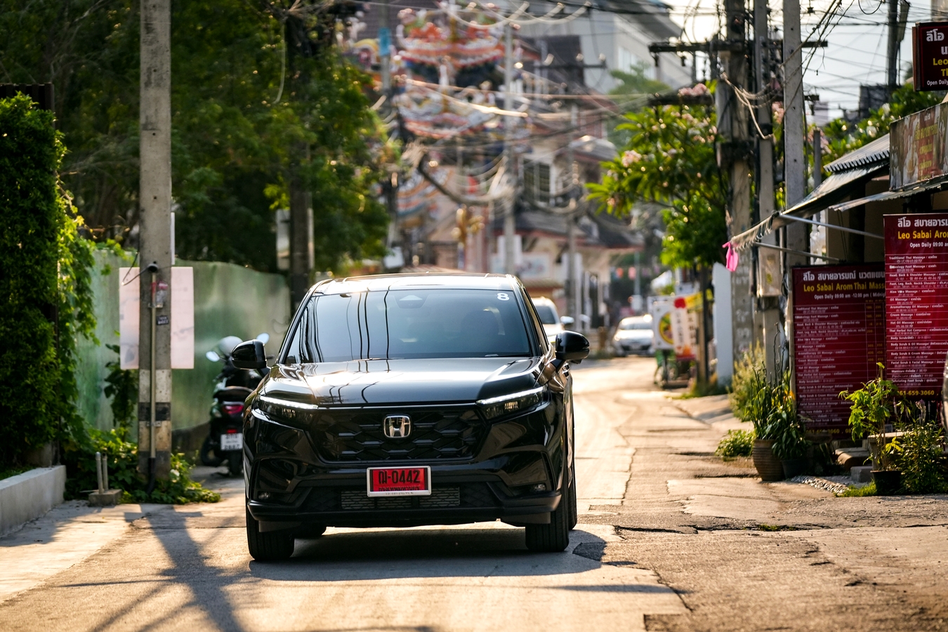 หลังจากพักกลางวันเรียบร้อยขบวน ฮอนด้า ซีอาร์-วี ใหม่ ก็ได้เวลาเคลื่อนตัวต่อในช่วงบ่าย ผู้เขียนที่เปลี่ยนมานั่งในรุ่น e:HEV ขับเคลื่อน 4 ล้ออัตโนมัติ เป็นตำแหน่งผู้โดยสารแถวหน้า จุดหมายการเดินทางในช่วงบ่ายอยู่ที่ร้าน WTF Coffee Campทางอำเภอสะเมิง โดยขับไปตามถนนวงแหวนแล้วตัดเข้าสู่ถนนแม่ริม-ปางตะ ความรู้สึกที่สัมผัสได้หลังเปลี่ยนรุ่นนั่งคือ ช่วงล่างหนึบแน่นมากขึ้น การตอบสนองของขุมพลังไฮบริดให้อัตราเร่งทันใจและเสียงการทำงานลดลง เส้นทางช่วงใกล้ถึงร้านก็เป็นทางลาดชันขึ้นลงให้พอได้ลองขับเปรียบเทียบกับรุ่น VTEC TURBO จริงๆ ด้วยพลังเสริมจากมอเตอร์ไฟฟ้า ทำให้การขับที่ต้องเน้นแรงบิดมั่นใจและสบายมากขึ้น พักจากร้านกาแฟจนได้เวลา ผู้เขียนก็สลับมาขับช่วงสุดท้ายเพื่อมุ่งหน้าเข้าตัวเมืองเชียงใหม่ไปจบทริปทดสอบที่โรงแรม Melia ซึ่งช่วงขับถึงทางราบในเมืองเป็นเวลาเย็นต้องเจอกับการจราจรหนาแน่นพอดี ช่วงเดินเบาออกตัวสลับหยุดนิ่งผู้เขียนสังเหตุว่าหลายจังหวะเป็นการขับเคลื่อนด้วยมอเตอร์ไฟฟ้าล้วน แต่ไม่สามารถเลือกเป็นโหมด EV ได้โดยตรง ปล่อยให้เป็นการคำนวนตามความเหมาะสม จบทริปด้วยอัตราสิ้นเปลืองของรุ่น e:HEV บนหน้าจอข้อมูลที่ 15 กม./ลิตร อย่างไรก็ตามนี่เป็นทริปขับทดสอบที่เน้นขับจริงจังด้านสมรรถนะไม่มีการขับแบบเน้นประหยัด ประกอบกับเส้นทางเกินครึ่งเป็นทางลาดชันขึ้นลงดอย ระยะทางรวมการขับของไฮบริดราว 80 กม. และ วีเทค เทอร์โบ ประมาณ 120 กม. จึงยังไม่สามารถสะท้อนการใช้งานแบบจริงได้เต็มที่มากนัก แต่โดยรวมก็พอสรุปได้ว่า ฮอนด้า ซีอาร์-วี ใหม่ ให้ฟิลลิ่งการขับที่เปลี่ยนไปจากรุ่นเดิมอย่างชัดเจนตามขุมพลังเครื่องยนต์ใหม่ทั้ง 2 แบบที่นำมาใช้เป็นครั้งแรกในโมเดลนี้ ให้อารมณ์การขับแบบสปอร์ตมากขึ้น การออกแบบภายนอกและภายในเป็นไปตาม DNA ของฮอนด้ายุคใหม่ก็เน้นความสปอร์ต และที่เปลี่ยนไปจากเดิมอีกก็คือ มีรุ่นย่อยแบบ 5 และ 7 ที่นั่งให้เลือก ซึ่งให้ความต้องการได้หลากหลายขึ้น ด้วยราคาเริ่มต้น 1,419,000 บาท และท็อปสุด 1,729,000 บาท สบายใจกับการรับประกันตัวแบตเตอรี่ไฮบริด 10 ปี และระบบไฮบริด 5 ปี ไม่จำกัดระยะทาง น่าจะเป็นรอครอบครัวคันต่อไปของใครหลายคน