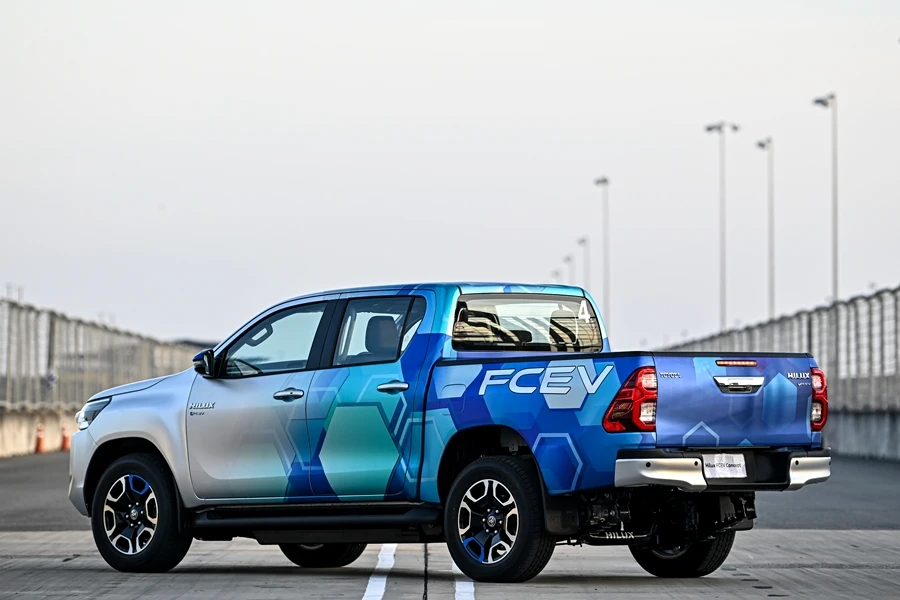 คันที่สองรุ่น Hilux FCEV(Fuel cCell Electric Vehicle) concept เป็นการนำกระบะ 4 ประตูมาปรับเปลี่ยนขุมพลังขับเคลื่อนด้วยพลังงานไฮโดรเจน ที่อาจได้มาจากพลังงานชีวภาพมูลสัตว์ปีกของซีพี และของเสียจากเศษอาหาร ส่วนระยะทางที่วิ่งได้ต่อการเติมเชื้อเพลิง 1 ครั้งเคลมไว้ที่ 600 กม. และยังสามารถรองรับการบรรทุกได้มากถึง 1,500 กก.