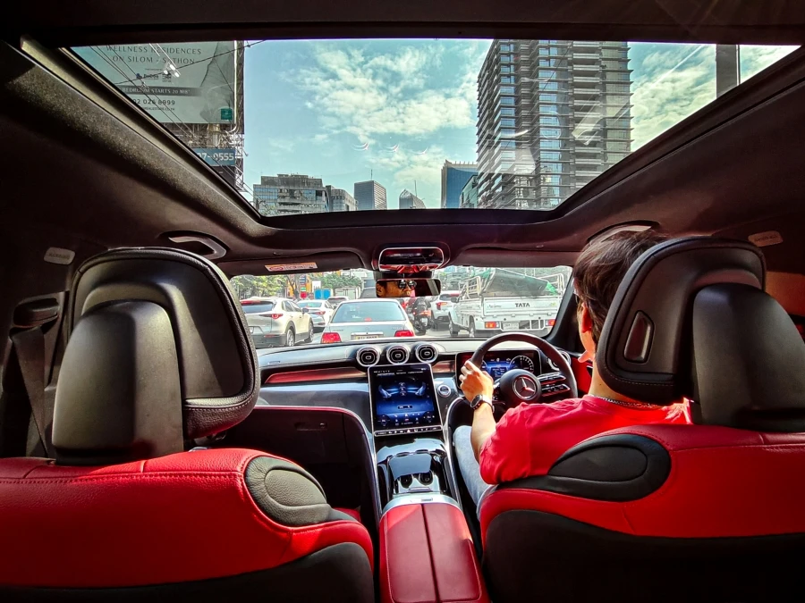 ก่อนว่าเรื่องการขับมาดูภายในห้องโดยสารก่อน แน่นอนว่าทุกอย่างก็เป็นไปตามซีดานคลาส C ต่างชัดเจนหน่อยก็ทรงพวงมาลัยท้ายตัด จริงๆ ดูทะมัดทะแมงกว่า รวมไปถึงการออกแบบตำแหน่งปุ่มทัชต่างๆ บนพวงมาลัย ส่วนตัวชอบจอทัชสกรีนขนาดใหญ่กลางคอนโซลดูเข้าใจและใช้ง่าย แต่รอยนิ้วมือก็ทิ้งไว้มากเช่นกัน จริงๆ การออกแบบให้เรียบง่ายแต่สะดวกต่อการใช้งานตามแนวคิด ‘Zero Layer’ เป็นอะไรที่ยอดเยี่ยม ใช้ได้ดีจริง แทบไม่เหลือปุ่มกดไว้แล้ว อย่างไรก็ตาม การได้ AMG package ทั้งภายนอกและภายในทำให้รถดูสปอร์ตและน่าขับมากยิ่งขึ้น รวมทั้งมีโปรแกรมขับออฟโรด Off-Road Engineering Package ไว้ให้ขับลุยทางฝุ่น ดิน ฯลฯ แต่ส่วนตัวก็ไม่เคยเห็นใครยอมเอาเอสยูวีหรูไปลุยให้เลอะ แม้มีระบบรองรับให้ก็ตาม