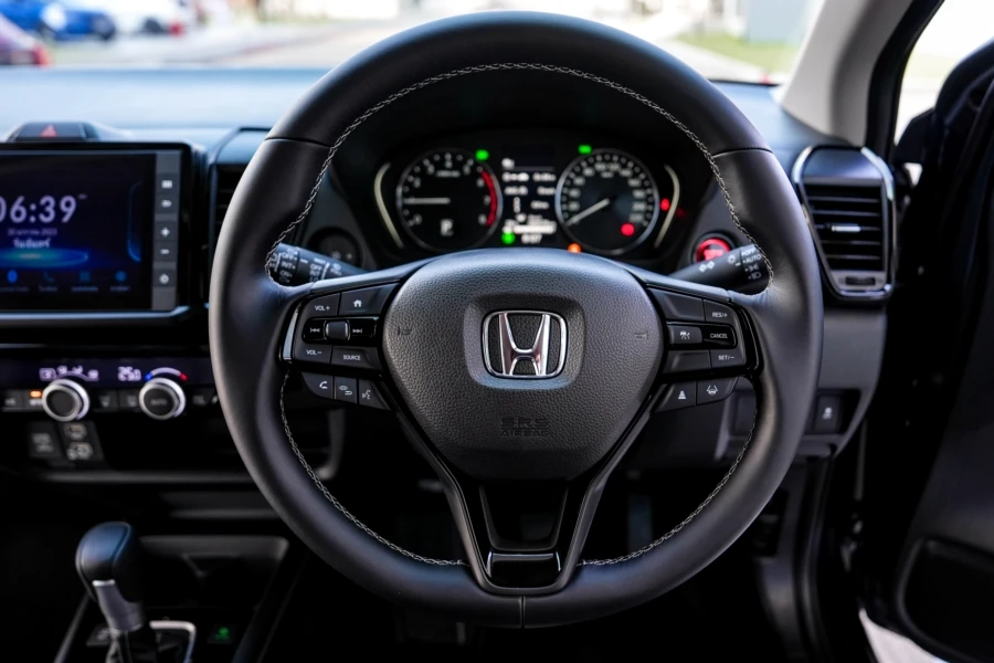 จุดเริ่มต้นของทริปทดสอบขับ ฮอนด้า ซิตี้ แฮทช์แบ็ก ใหม่ เป็นการตอกย้ำสมถรรนะและอรรถประโยชน์อีกครั้งด้วยรูปลักษณ์ที่สดใหม่และคุ้มค่ากว่าที่เคยด้วยรุ่น e:HEV SV ซึ่งผู้เขียนได้ขับรุ่นนี้พอดีในเส้นทางขาไปกว่า 170 กม. โดยเริ่มสตาร์ทจากบริษัท ฮอนด้า ออโตโมบิล (ประเทศไทย) จำกัด ในนิคมอุตสหกรรมบางชัน เสรีไทย 87 มุ่งหน้ามอเตอร์เวย์ ชลบุรี-พัทยา และตัดมาใช้ทางหลวงหมายเลข 331 เพื่อไปแวะจุดถ่ายรูปในท่าอากาศยานนานาชาติอู่ตะเภา และไปพักกลางวันที่ร้ารแสมสารซีฟู๊ด ระหว่างทางมีทั้งขับและนั่งตำแหน่งผู้โดยสารตอนหน้า พอสรุปได้ว่า ฟังก์ชันใหม่การเชื่อมต่อสมาร์ทโฟนแบบไร้สายกับไอโฟนทำได้สะดวก ใช้กูเกิ้บแมพได้ดี เล่นเพลงสะดวก เมื่อมานั่งการปรับเบาะแบบมือเป็นสิ่งที่น่าแปลกใจอยู่ แต่ความทันสมัยบนพวงมาลัยกับฟังก์ชันต่างๆ ชดเชยได้ดี โดยเฉพาะ ACC กับ LSF ระบบควบคุมความเร็วอัตโนมัติแบบแปรผันพร้อมระบบปรับความเร็วตามรถยนต์คันหน้าที่ความเร็วต่ำ นอกจากนี้จังหวะที่ขับเข้าใกล้รถใหญ่บนทางเปิดโล่งของเส้น 331 ก็ได้มีโอกาสเห็นระบบเตือนการชนพร้อมระบบช่วยเบรก CMBS ทำงาน และเมื่อขับเข้าเขตตัวเมืองที่มีแยกสัญญานไฟก็ชอบระบบเตือนเมื่อรถคันหน้าเคลื่อนที่ ช่วงแรกของการขับรุ่น e:HEV SV ได้อัตราสิ้นเปลืองบนหน้าจอแสดงข้อมูลการขับแบบ TFT ขนาด 7 นิ้วอยู่ที่ 20 กม./ล. ซึ่งไม่ได้เน้นการทำตัวเลขประหยัดเป็นการขับตามสภาพจริงที่มีผู้โดยสารเต็มทุกที่นั่ง 4 จุดหน้า-หลังพร้อมสัมภาระ