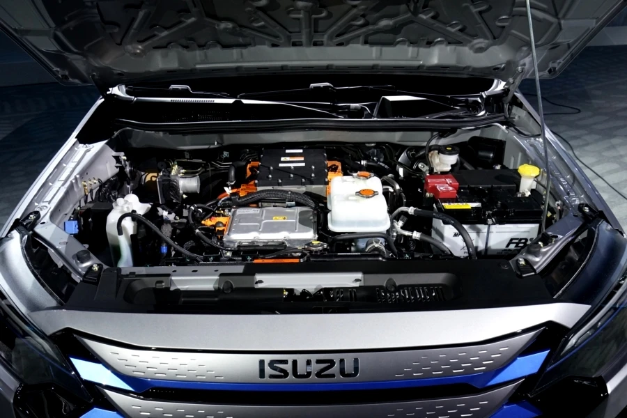 อีซูซุ D-Max EV Concept รถปิกอัพไฟฟ้าต้นแบบ พื้นฐานจากรุ่นปิกอัพ 4 ประตู ระบบขับเคลื่อน 4 ล้อแบบ Full Time โดยใช้แพลตฟอร์มเดียวกันกับรถปิกอัพเครื่องยนต์ดีเซล ชุดมอเตอร์คู่และเฟืองท้าย eAxle พัฒนาขึ้นใหม่ ทำงานร่วมกันทั้งด้านหน้าและด้านหลัง ผสานกับช่วงล่างด้านหลังใหม่หมดแบบ De-Dion มั่นใจบนทุกสภาพถนน เหมาะสมกับการใช้งานของรถปิกอัพ สร้างดุลยภาพในการขับขี่ทั้งความนุ่มนวล และความสามารถในการบรรทุกอันยอดเยี่ยม จุดเด่นคือ ใช้มอเตอร์ไฟฟ้ากำลังสูง 2 ตัว แรงบิดรวมกัน 325 นิวตัน-เมตร มอเตอร์ไฟฟ้าคู่กำลังสูง การออกแบบโครงและตัวถังที่แข็งแกร่งช่วยเพิ่มความสามารถในการลากจูงได้
