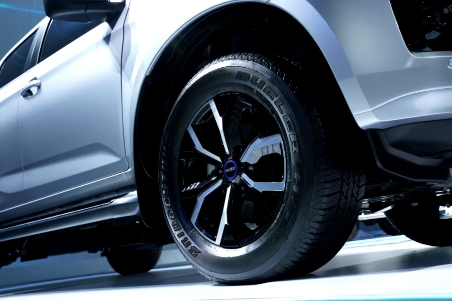 - ชุดมอเตอร์ไฟฟ้าคู่และเฟืองท้าย “eAxle” พัฒนาขึ้นใหม่ ทำงานร่วมกันทั้งด้านหน้าและด้านหลัง ผสานกับช่วงล่างด้านหลังใหม่หมดแบบ De-Dion มั่นใจบนทุกสภาพถนน เหมาะสมกับการใช้งานของรถปิกอัพ สร้างดุลยภาพในการขับขี่ทั้งความนุ่มนวลและความสามารถในการบรรทุกอันยอดเยี่ยม