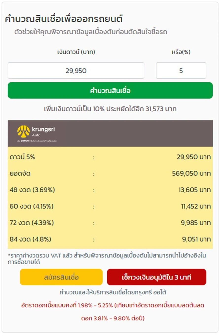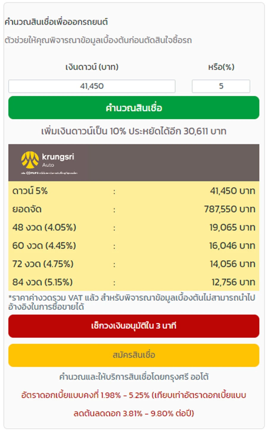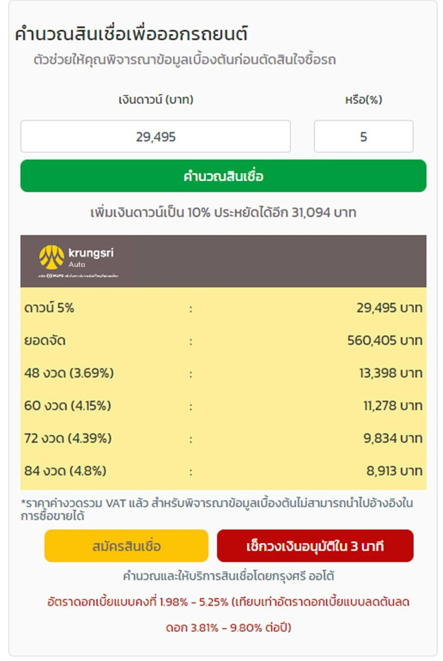 คำนวณสินเชื่อสำหรับรถยนต์