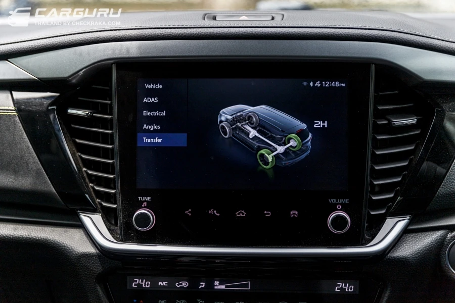 - ใหม่! Infotainment Display ขนาด 9 นิ้ว แบบสัมผัส รองรับ Wireless Android Auto & Wireless Apple CarPlay พร้อม Multitasking System เชื่อมต่อข้อมูลกับ Integrated MID แสดงผลได้หลากหลายฟังก์ชัน เช่น ระบบช่วยเหลือผู้ขับขี่ ADAS ระบบแสดงองศามุมปีนไต่ ลาดเอียง และทิศทางการเลี้ยวของล้อ