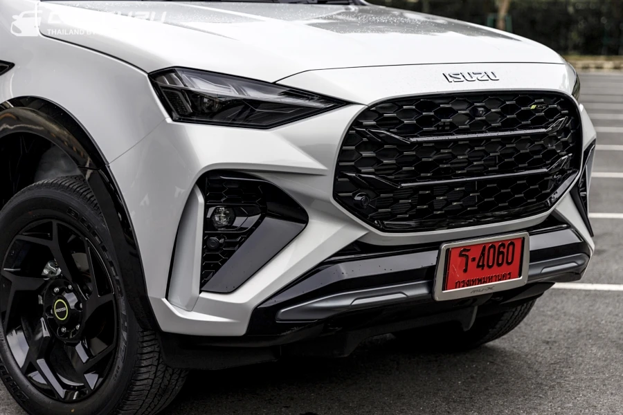 MU-X RS รุ่นท็อปใหม่ พร้อมชุดแต่ง RS Design และสีใหม่ เทา ไอเกอร์ โอเพค นอกจากนี้ตัวรถด้านหน้ายังดูสปอร์ตกับกันชนหน้าดีไซน์ใหม่แบบ Fighter Jet และสะดวกสบายกับการขับในเมืองมากยิ่งขึ้นด้วย พวงมาลัยไฟฟ้า และ 360° Surround View Camera กล้อง 360 องศา พร้อมอัพเกรดระบบความปลอดภัยที่เหนือไปอีกขั้นกับ ADAS Generation เวอร์ชันล่าสุด