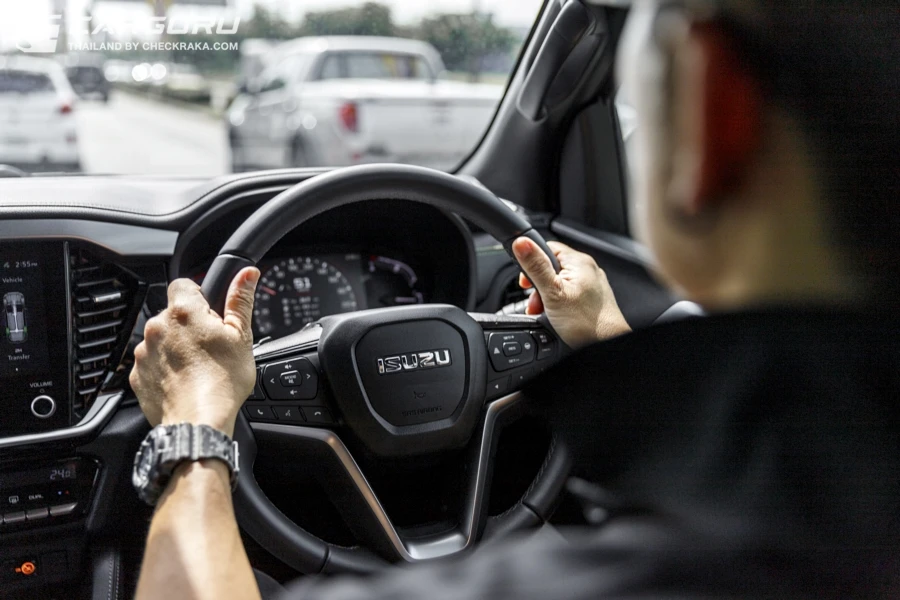 อีซูซุ MU-X รุ่น RS นับเป็นรุ่นเพิ่มใหม่เข้ามาในซีรี่ย์ มิว-เอ็กซ์ และเป็นรุ่นท็อปใหม่ล่าสุดด้วยเช่นกันโดยใช้เครื่องยนต์อีซูซุ 3.0 ดีดีไอ บลูเพาเวอร์ ที่ให้กำลังสูงสุด 190 แรงม้า ที่ 3,600 รอบ/นาที แรงบิดสูงสุด 450 นิวตัน-เมตร ที่ 1,600-2,600 รอบ/นาที เพียงบล็อคเดียว แต่มี 2 รุ่นทางเลือกกับระบบขับเคลื่อน 2 ล้อ และ 4 ล้อ ภาพลักษณ์ของรุ่นนี้เน้นไปที่ความสปอร์ตตั้งแต่ภายนอก ภายใน พร้อมกับฟังก์ชันมากมาย และฟีเจอร์ใหม่ๆ ซึ่งมีหลายอย่างที่มีเฉพาะรุ่นนี้เท่านั้น ทำให้ความโดดเด่นของ อีซูซุ MU-X ใหม่ ตกยกให้กับรุ่นนี้จริงๆ แน่นอนว่ารวมไปถึงราคาด้วย ในส่วนของสมรรถนะการขับก็ยังตอบโจทย์รอบด้านกับการเป็นรถเอสยูวีครอบครัว 7 ที่นั่งคันใหญ่และไปได้ทุกเส้นทางจริงๆ ด้วยพวงมาลัยไฟฟ้าใหม่ทำให้การขับใช้งานเปลี่ยนไปจากรุ่นก่อนปรับโฉมชัดเจน ตอบสนองดีขึ้นเบามือและควบคุมได้แม่นยำขึ้น นอกจากนี้การมีระบบขับเคลื่อน 4 ล้อให้เลือกก็เป็นทางเลือกให้กับพ่อบ้านสายลุยที่ชอบการขับเที่ยวทางไกล ลุยเข้าเส้นทางออฟโร้ดสลับออนโร้ดได้เป็นอย่างดี ล่าสุดที่ได้ขับเป็นระยะทางกว่า 400 กม. ได้อัตราสิ้นเปลือง 10.4 กม./ลิตร ตัวรถแม้หนัก 2,175 กก. เพราะมีชิ้นส่วนขับเคลื่อน 4 ล้อติดตั้ง แต่ก็ให้การออกตัวและขับเคลื่อนในเมืองที่กระฉับกระเฉง คล่องแคล่วเหมือนไม่ใช่รถเอสยูวีขนาด 2 ตันกว่า การอยู่ในรถนานช่วงรถติดในเมืองนับว่าสบายและไม่อึดอัด ชอบเบาะหนังสังเคราะห์ COOLMAX แถมปรับไฟฟ้า 8 ทิศทางฝั่งคนขับ และ 4 ทิศทางที่เบาะข้าง ให้ความละเอียดในการปรับมุมองศาให้เข้ากับสรีระและปรับเปลี่ยนสะดวกในช่วงเวลาที่ต้องการ ด้านระบบเครื่องเสียง ได้หน้าจอสัมผัสขนาด 9 นิ้ว รองรับระบบ Wireless Android Auto และ Wireless Apple CarPlay แต่ไม่มีไวเลสชาร์จ และพอร์ตรองรับไทป์ C แบบใหม่อย่างเดียว ใครใช้สายหัวยูเอสบีแบบเก่าต้องใช้อแดปเตอร์ยูเอสบีที่ช่องจ่ายไฟเสียบเพิ่ม อย่างไรก็ตามการเชื่อมต่อกับสมาร์ทโฟนลองทั้ง 2 โอเอสแล้วพบว่า ฝั่งไอโอเอสเชื่อมต่อได้ง่ายกว่า การเล่นเพลงผ่านแอพฯ นิยมอย่าง Spotify สะดวกสบายแต่คุณภาพเสียงธรรมดากว่าที่คาดหวัง
