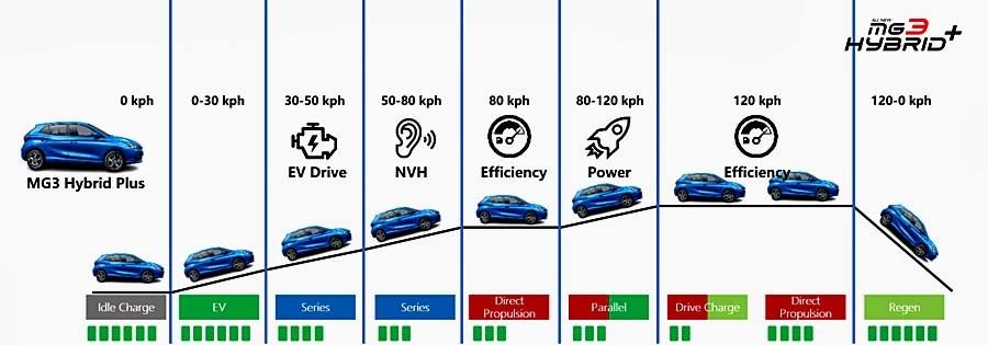 สำหรัลบการทำงานของระบบไฮบริดพลัสทั้ง 8 โหมด เป็นการปรับเปลี่ยน คำนวนและเรียนรู้ในการผสานพลังงานระหว่างเครื่องยนต์+มอเตอร์ไฟฟ้าขับเคลื่อน+เจนเนอเรเตอร์+โหมด EV ไฟฟ้าล้วน และการรีเจนฯ ไฟกลับ ที่จะสลับหรือแบ่งการทำงานแบบละเอียดยิบ