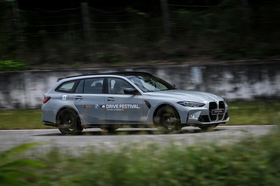 ถัดมาในรุ่น M3 Competition M xDrive Touring รถตระกูลเอ็มที่ดูเป็นมิตรมากที่สุดในเทสนี้ ด้วยการผสมผสานการเป็นรถซีดานทัวร์ริ่ง หรือ เอสเตท หรือ แวน ก็แล้วแต่เรียกผนวกเข้ากับขุมพลัง M ชูจุดเด่นขุมพลังเบนซินเทอร์โบ 6 สูบ 560 แรงม้า เกียร์ 8 สปีดสเตปทรอนิค พร้อมระบบขับเคลือน 4 ล้ออัจฉริยะ xDrive และเฟืองท้าย M สามารถทำเวลา 0-100 กม./ชม. ได้ที่ 3.6 วินาที การเข้าไปนั่งภายในห้องโดยสารให้อารมณ์และความรู้สึกที่แตกต่างกับ M2 ชัดเจนในทุกรายละเอียด การขับในสนามได้ 3 รอบสนามเหมือนกัน รอบแรกตามรถนำเพื่อจับอาการรถที่ต่างรุ่นทั้งจุดยกและเบรก การขับเปลี่ยนปรับโหมดเหมือนเดิมคือจากธรรมดา แล้วค่อยสปอร์ต ตัวรถมีอาการพอให้รู้สึกถึงการเหวี่ยงที่ด้านท้ายขณะเข้าโค้งความเร็ว แต่ไม่ใช่การเสียอาการแค่รู้สึกได้ว่ามีแรงเหวี่ยงที่ท้ายออกด้านข้าง ครบ 3 รอบ