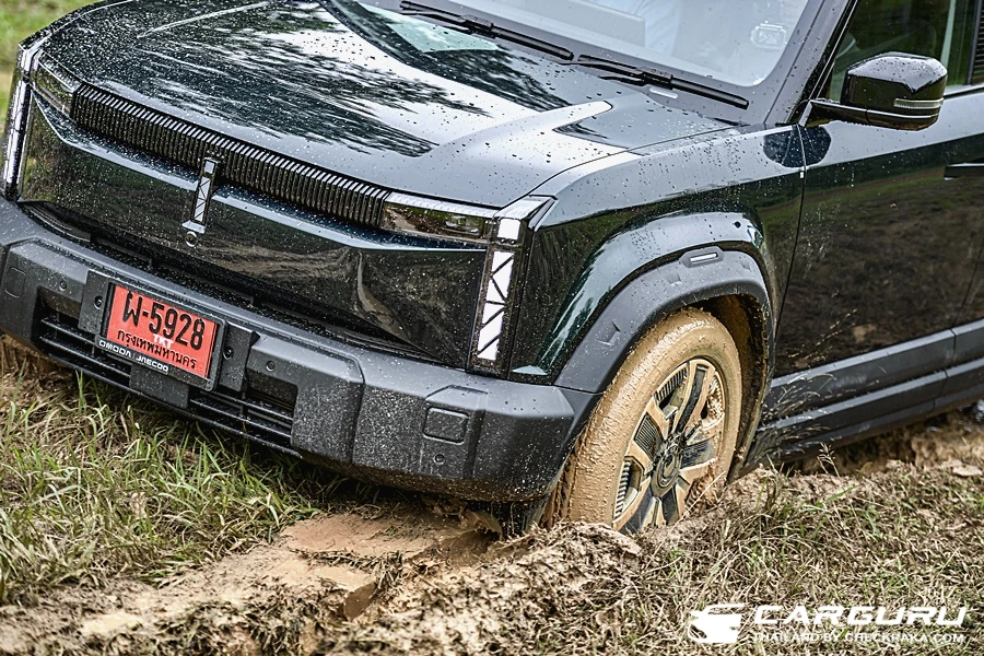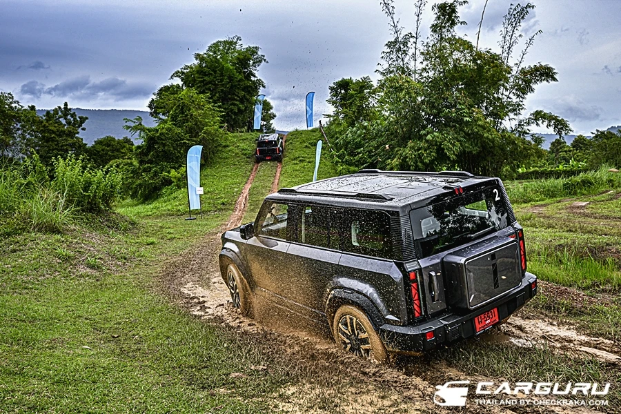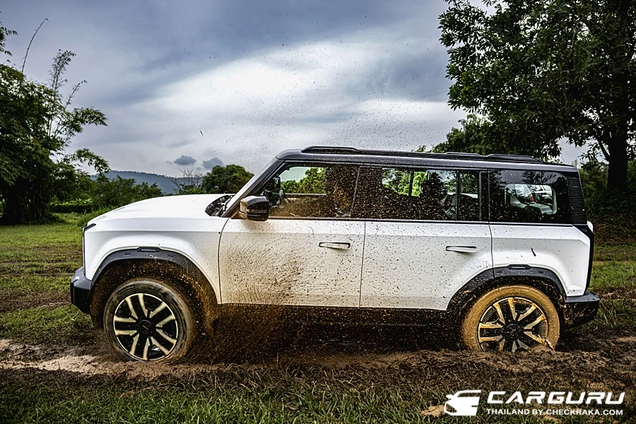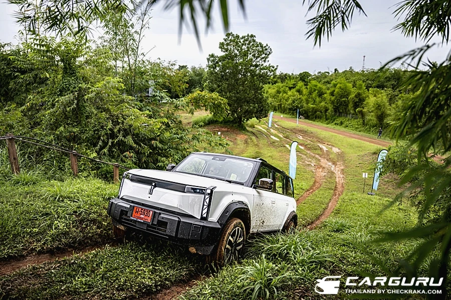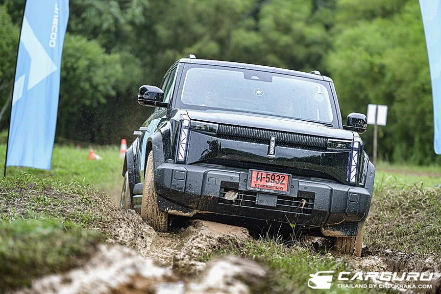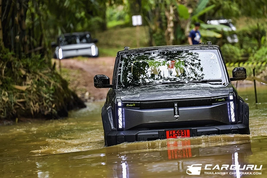 ลุยน้ำสูงเกือบ 60 ซม. เป็นเรื่องง่าย เมื่อขับผ่านบ่อน้ำจำลองของสนามแห่งนี้มีความลึกราวกว่า 50 ซม. ผ่านสบาย ๆ ครับ และที่สำคัญแบตฯ มีระบบซีลกันน้ำอย่างดี และไม่ต้องเรื่องระบบสายไฟช็อตเพราะผ่านมาตรฐานด้านความปลอดภัย และยังหมดห่วงน้ำเข้ากรอกอากาศเพราะ "ไม่มีครับ" 55555 และสุดท้ายต้องบอกว่าการขับลุยครั้งนี้ใช้ยางเดิมติดรถหรือยาง H/T ทั่วไปจากแบรนด์ GITI อีกด้วย แต่กลับขับลุยภาพผิวเส้นทางแบบนี้ได้แบบงง ๆ