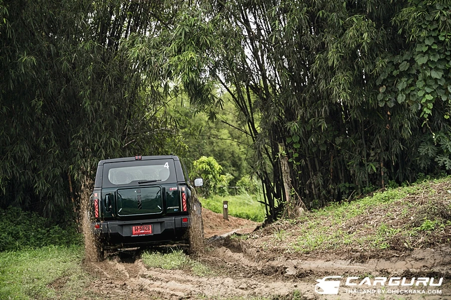 การขับขี่ในสนามแห่งนี้มีทั้งปีนขึ้นทางชั่นที่สภาพทางดินโคลนเปียกลื่น ๆ และปีกเนินเอียง รวมถึงผ่านช่วงที่มีโคลนเละ ๆ ลึกมาก ๆ แม่ว่าผู้ขับขี่จะปรับมายังโหมด Slippery ซึ่งโหมดนี้จะยังต้องใช้ทักษะพื้นฐานติดตัวที่มีอยู่บ้าง แต่ระบบก็สามารถช่วยเหลือและขับผ่านไปได้แบบง่ายมากจนรู้สึกได้ว่า แม้คุณจะไม่เคยขับสไตล์ออฟโร้ดมาก่อน หากเจอสถานการณ์เช่นนี้เพียงเลือกโหมดที่ต้องการ เช่น Slippery หรือ All Road ก็สามารถขับผ่านไปได้สบาย ๆ ครับ