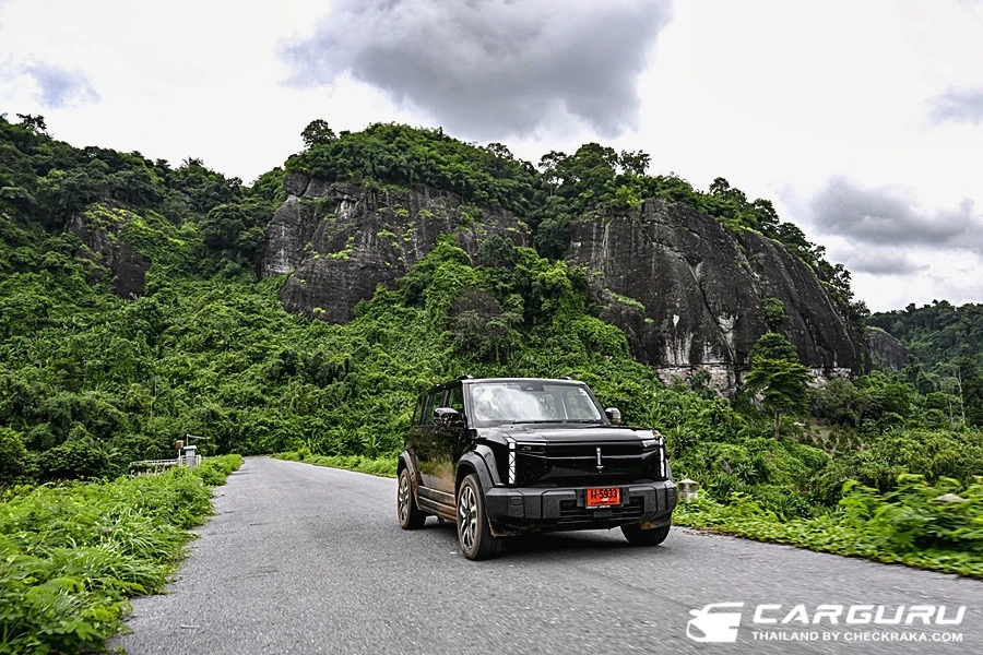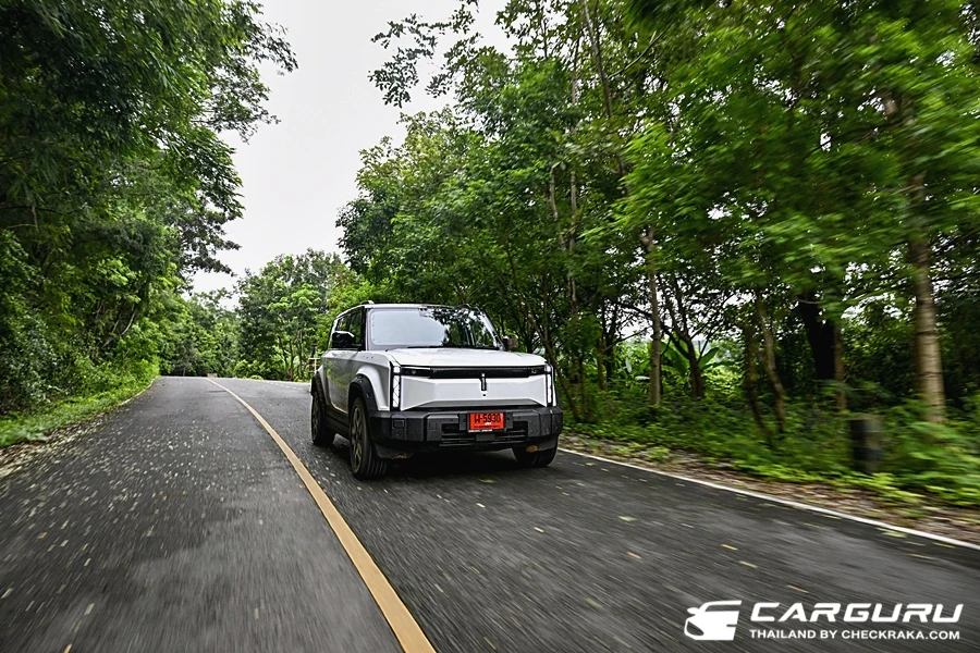 เห็นทรงกล่องเหลี่ยมจัดแบบนี้ลุยออฟโร้ดได้ดีเกินคาดจะขับบนทางดำหรือทางเรียบทั่วไปแล้วจะแย่ไหม? ยอมรับว่าแรก ๆ ก็คิดแบบนี้เลยครับ แต่หลังจากขับออกถนนปกติ อ่าวทำไมขับสบายจัง พลังมอเตอร์ไฟฟ้าแรงเหลือ ๆอยูแล้ว แต่เรื่องของความสบายในการขับขี่ เช่น น้ำหนักพวงมาลัยที่ปรับระดับได้ 3 ระดับ ความแม่นยำและคมกระชับของพวงมาลัยที่เลี้ยวได้ตามมือ คล่องตัวด้วยขนาดตัวรถที่ไม่ใหญ่จนเทอะทะขนาดราว ๆ ATTO 3/CR-V เจนที่แล้ว/Corolla Cross ประมาณนี้ครับ