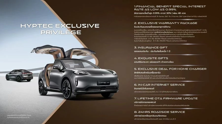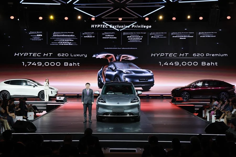 HYPTEC HT เอสยูวีไฟฟ้าลักซ์ชัวรี่ระดับไฮเอนด์ เน้นความหรูหราและเทคโนโลยีขั้นสูง ที่ผสานเข้ากับการออกแบบและการใช้งานได้อย่างสมบูรณ์แบบ ด้วยจุดเด่น 5 ด้านของตัวรถ ได้แก่ HYPTEC Design, HYPTEC Space, HYPTEC Smart, HYPTEC Energy และ HYPTEC Performance พร้อมลงสู้ศึกตลาดรถยนต์ไฟฟ้าระดับไฮเอนด์ เพื่อแสดงถึงความมุ่งมั่นในการนำเสนอความหรูหราเหนือระดับและเทคโนโลยีใหม่ในอุตสาหกรรมยานยนต์