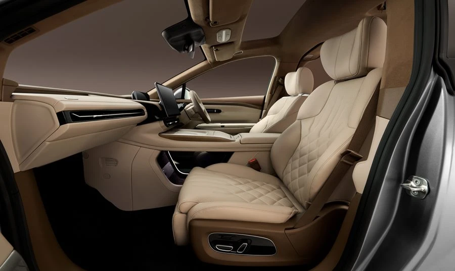 HYPTEC HT นำเสนอมิติใหม่ของความสะดวกสบายและความหรูหราเหนือระดับ ด้วยห้องโดยสารระดับเฟิร์สคลาสขนาดใหญ่พิเศษ เพื่อการพักผ่อนที่สะดวกสบาย เบาะนั่งโดยสารหุ้มด้วยวัสดุหนัง Nappa คุณภาพสูงและที่พักแขนทำจากวัสดุไม้แท้ ให้สัมผัสที่ดีเยี่ยม พร้อมด้วยฟีเจอร์เบาะรองน่องผู้โดยสารด้านหน้าปรับด้วยระบบไฟฟ้า พนักพิงเบาะหลังปรับเอนได้มากถึง 143 องศา ทำให้ผู้โดยสารสามารถนอนพักผ่อนได้อย่างสะดวกสบาย เพิ่มความสบายระหว่างการเดินทางด้วยที่รองขาสำหรับผู้โดยสารตอนหลัง ทำให้ผู้โดยสารสามารถเหยียดขาได้อย่างอิสระ ลดอาการเมื่อยล้าของขาและเท้าระหว่างการเดินทางไกล นอกจากนี้ยังมีโต๊ะอเนกประสงค์ในเบาะหลังคนขับดีไซน์โค้ง เพื่อลดอันตรายจากการกระแทกสำหรับเด็ก เบาะนวดไฟฟ้า 10 จุดคู่หน้า มอบความเพลิดเพลินจากการนวดระดับสปาด้วยโหมดการนวด 5 รูปแบบ