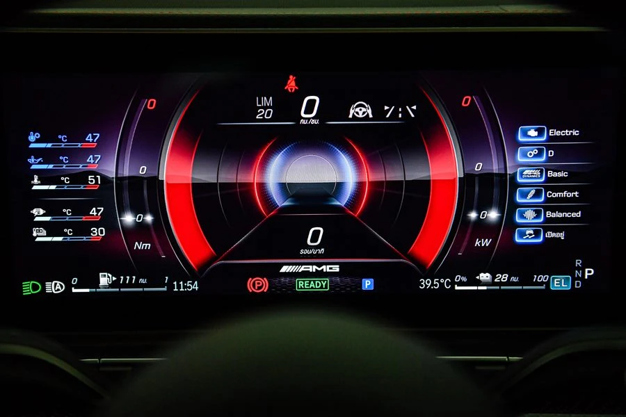 มอบประสบการณ์การขับขี่ที่เหนือกว่าด้วยระบบปฏิบัติการ MBUX7 แบบ zero-layer concept ที่ออกแบบมาตามรูปแบบโปรแกรม AMG ไม่ว่าจะเป็น หน้าจอธีมพิเศษของ AMG รวมถึงการวัดแทร็กสนาม โดยควบคุมผ่านจอกลางแบบ widescreen cockpit ขนาด 12.3 นิ้ว ที่เชื่อมต่อกับ AMG Head-up Display ขนาด 12.3 นิ้ว ติดตั้งระบบนำทางแสดงภาพเสมือนจริง MBUX augmented reality for navigation และระบบเสียง Burmester® surround sound system ลำโพง 13 ตัว กำลังขับ 590 วัตต์ พร้อม Dolby Atmos® ช่วยมอบเสียงเพลงที่คมชัดสมจริงรอบทิศทางราวกับอยู่ในสตูดิโอ