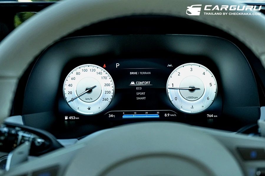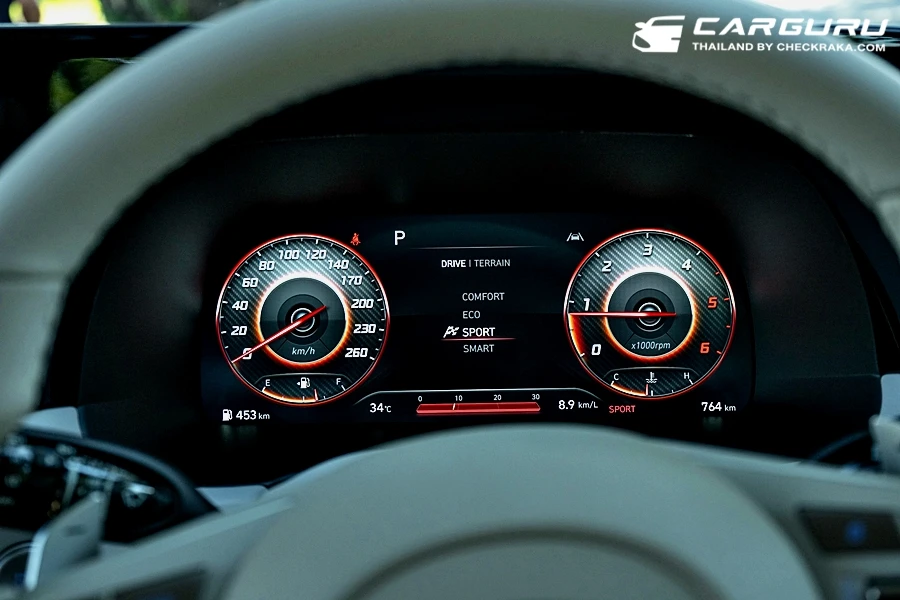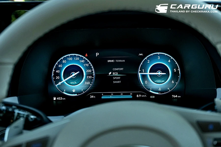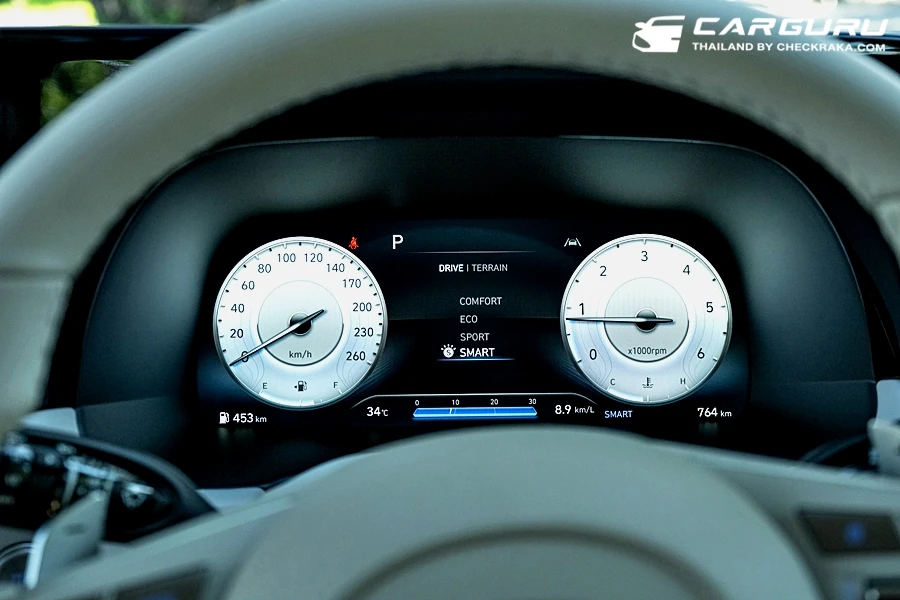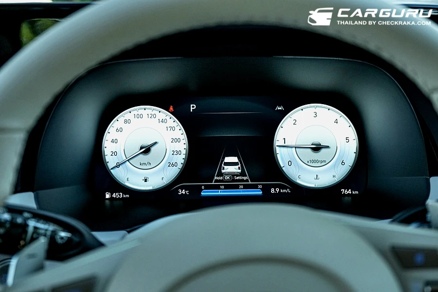Staria ขนาด 12.3 นิ้ว พร้อมแสดงภาพจากกล้องด้านข้างตัวรถเมื่อเปิดไฟเลี้ยว และแสดงข้อมูลการขับขี่ต่าง ๆ ครบถ้วนทั้งระบบเตือนเรื่องความปลอดภัยต่าง ๆ เป็นต้น จอความบันเทิงตรงกลางขนาด 12.3 นิ้ว รองรับ Apple CarPlay / Android Auto แต่ต้องบอกก่อนว่าหากเป็นระบบ Android เมื่อเปิด Google Map จอจะแสดงภาพเล็กกว่าใช้ระบบ IOS ผ่าม!