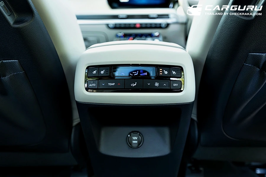 ระบบปรับอากาศอัตโนมัติแยก 3 โซน หน้าแยกปรัลอุณหภูมิซ้าย/ขวา และด้านหลัง พร้อมช่องแอร์บนแพดานเย็ยฉ่ำทั้งคัน ในตำแหน่งเบาะแถวที่สองมีสิ่งอำนวยความสะดวกสบายมากมาย เช่น ช่อง USB-C ที่ด้านข้างเบาะคู่หน้า แผงคอนโทรลแอร์ ม่านบังแดดแบบ "มือดึง" ช่องวางแก้วน้ำตรงมือจับประตูข้างละ 2 ตำแหน่ง และช่องมือจับประตูที่สามารถเอาไว้วางของได้ด้วย หลังคากระจกพร้อมม่านไฟฟ้า แต่สวิตช์เปิด-ปิดอยู่ที่เพดานด้านหน้า ต้องใช้ "คำสั่งเสียง" บอกคนขับเปิด-ปิดให้