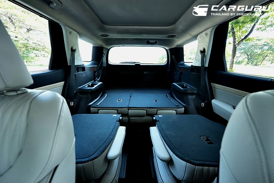 เบาะสามารถพับเก็บแบบแบนราบได้ทั้งแถวสองและแถวสามที่แยกพับแบบ 60:40 และมีสวิตช์กดเลื่อนเบาะดฃเพื่อขึ้นไปนั่งแถบสามที่ด้านข้างเบาะตอนสองหรือตรงด้านบนบริเวณหัวไหล่เบาะพิงหลัง และถ้าต้องการพับเบาะในขณะกำลังขนของแบบเร่งด่วน สามารถกดสวิตช์ไฟฟ้าพับเบาะแถวที่สองได้จากแผงสวิตช์ฝั่งซ้ายด้านหลังได้ทันที และประตู้ท้ายเปิดปิดไฟฟ้าพร้อมระบบ Smart (Handfree)
