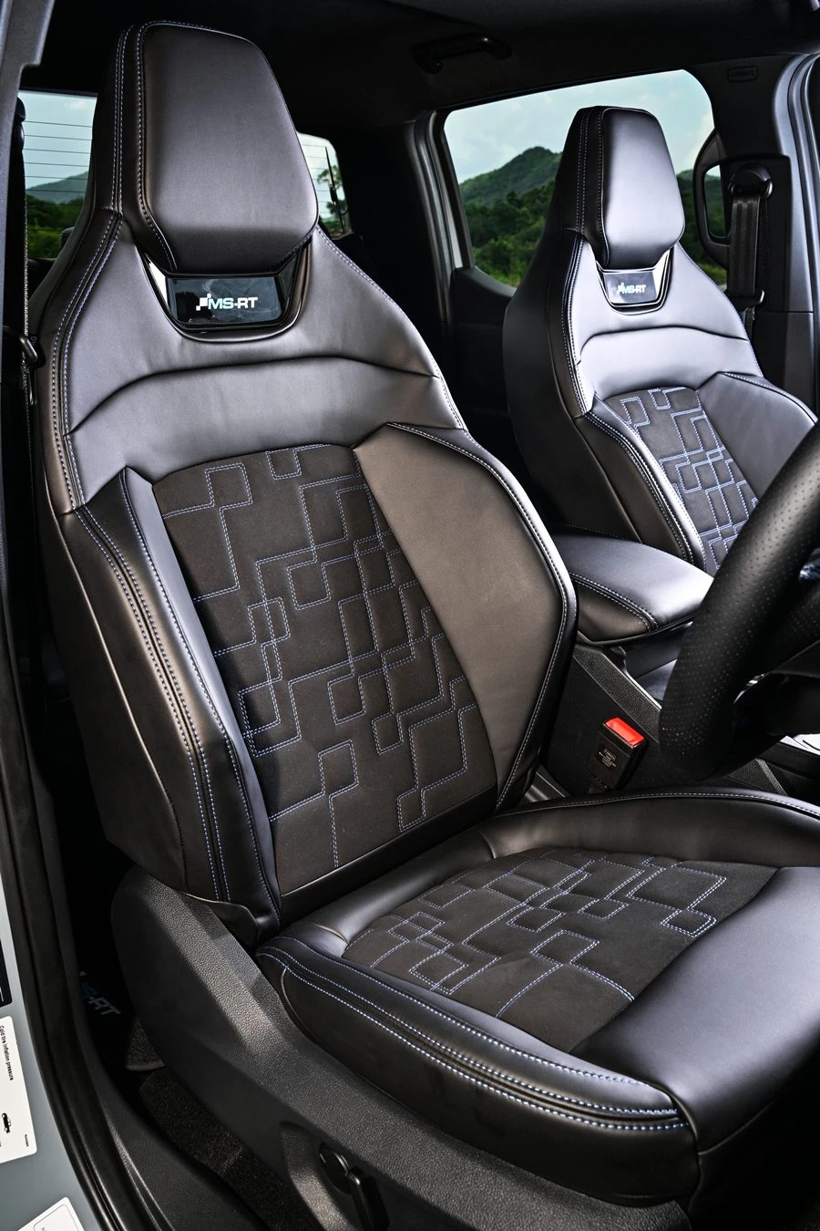 ภายในห้องโดยสารโดดเด่นด้วยการออกแบบที่ให้ความรู้สึกหรูหราและความสะดวกสบายสไตล์สปอร์ต ด้วยเบาะนั่งคู่หน้าที่ออกแบบเฉพาะให้รองรับสรีระของผู้ขับขี่อย่างลงตัว ด้านข้างเบาะโอบกระชับ เบาะหุ้มด้วยวัสดุหนังสังเคราะห์และหนังกลับ ตกแต่งด้วยโลโก้ MS-RT และเดินด้ายสีน้ำเงินทั้งบนเบาะและรอบห้องโดยสาร เพิ่มความพิเศษด้วยพวงมาลัยสปอร์ตดีไซน์ใหม่ ตกแต่งด้วยแถบสีน้ำเงินที่ตำแหน่ง 12 นาฬิกา และเดินด้ายสีน้ำเงินที่เข้ากันเป็นอย่างดี