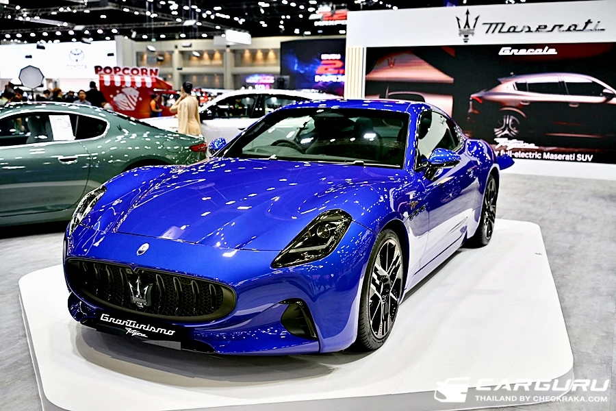 GranTurismo Folgore Limited Edition 110 Anniversario’ มีเพียง 110 คัน ทั่วโลก มาจัดแสดง ให้ได้ชมกันแบบใกล้ชิด ผ่านการตกแต่งพิเศษจาก Fuoriserie Program พร้อมนำเทคโนโลยี จากสนามแข่ง ฟอร์มูลา อี (Formula E) สุดยอดรายการแข่งรถยนต์ไฟฟ้าชิงแชมป์โลก อาทิ แบตเตอรี่ 800 โวลต์ ขับเคลื่อนด้วยพลังจาก 3 มอเตอร์ไฟฟ้า (1 ด้านหน้า และ 2 ด้านหลัง) มีกำลังรวมสูงถึง 761 แรงม้า (CV) และแรงบิดมหาศาล 1,350 นิวตันเมตร ใช้เทคโนโลยีการติดตั้งแบตเตอรี่ กับโครงสร้างรถเป็นทรงคล้ายตัวอักษร T ส่งผลให้ตำแหน่งการขับสามารถทำได้ดีแบบรถสปอร์ต พันธุ์แท้และช่วยเพิ่มความแข็งแกร่งให้กับโครงสร้างตัวถังได้ดี และเพื่อเป็นการเดินหน้าสู่พลังงานแห่งอนาคตอย่างเต็มที่ และก็ยังมีรุ่น ‘Grecale Folgore’ สปอร์ตเอสยูวีไฟฟ้า 100% คันแรกของค่ายตรีศูล แรงจัดระดับ 550 แรงม้า (HP) มาให้สัมผัส มาเซราติ สายพันธุ์ โฟลกอเร ขับเคลื่อนด้วยไฟฟ้า 100% มาพร้อมแพ็กเกจ ราคาขำๆ ที่ 12,900,000 บาท