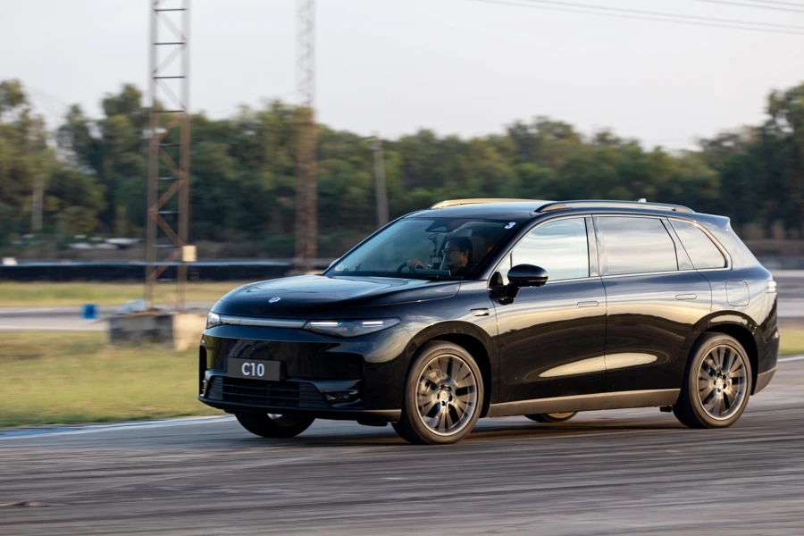 การลองขับ Leapmotor C10 เป็นครั้งแรกในสนามปทุมสปีดเวย์ กับหลากหลายสถานีทดสอบจนได้ข้อสรุปที่น่าสนใจดังนี้ C10 เป็นเอสยูวีที่ให้ฟิลลิ่งช่วงล่างหนึบแน่นจนเกินความคาดหมาย อัตราเร่งที่ทันใจและเร่งแซงได้อย่างมั่นใจแน่นอน การเลี้ยวเที่ยงตรงและคมเมื่อเทียบกับความเป็นเอสยูวี ฟิลลิ่งการเบรกก็ให้ความรู้สึกตอบกลับมที่นุ่มนวลและละเอียดกว่ารถญี่ปุ่นไฮบริดหลายยี่ห้อ และขับสนุกกับระบบขับเคลื่อนมอเตอร์เดี่ยวที่ล้อหลัง นอกจากนี้พื้นที่รอบตัวภายในรถยังเป็นจุดเด่นที่เหนือกว่าคู่แข่งในคลาสเดียวกันเพราะกว้างขวางมาก เบาะก็นั่งสบายแต่ขับแบบเน้นสมรรถนะก็ยังรองรับสรีระได้ดีพอสมควร พวงมาลัยแบบ 2 ก้าน อาจรู้สึกต่างจากความคุ้นชินที่มักเป็นแบบสามก้านมากกว่า แต่ก็ยังจับถนัดคอนโทรลทิศทางบังคับเลี้ยวได้ปกติ