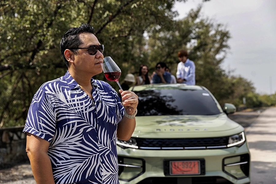 รถยนต์กระบะไฟฟ้า RIDDARA RD6 เห็นว่านอกจากจะขับเที่ยวใน 1 วันสบายด้วยชาร์จเดียวแล้ว ยังมระบบช่วงล่างที่นุ่มนวล จากการใช้อิสระ 4 ล้อ แท้ ๆ แบบรถ SUV ระบบกันสะเทือนหน้าแบบแม็คเฟอร์สันสตรัท (MacPherson Strut) ด้านหลังอิสระแบบมัลติลิงก์ (Multi-link) แต่สามารถรองรับน้ำหนักบรรทุกได้ถึง 1,030 กิโลกรัม วันนี้เลยอยากจะทดลอง ชวนเพื่อน ๆ มา ขย่มกันในรถ เอ้ย! ขย่มรถกันดูว่า ระบบช่วงล่างที่นุ่มนวลแบบนี้ จะทำแก้วใส่ไวน์ใส่น้ำผลไม้หกหรือไม่