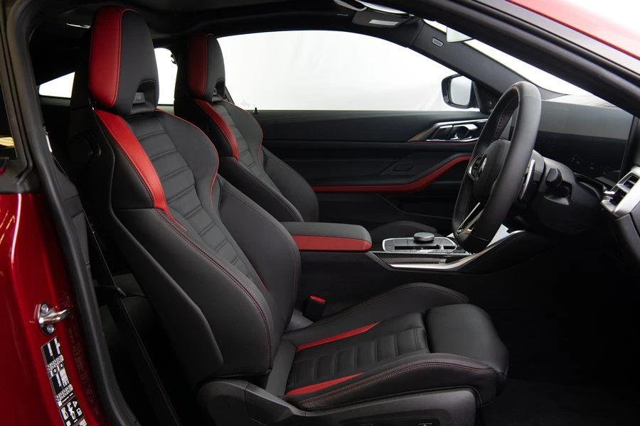 ภายในห้องโดยสาร ทั้งสองรุ่นยังเสิร์ฟบรรยากาศความสปอร์ตต่อเนื่อง เริ่มจากเบาะหลังแบบแยกที่นั่งที่ช่วยให้ผู้โดยสารด้านหลังสนุกไปกับการโลดแล่นบนท้องถนนได้เหมือนกับผู้โดยสารเบาะหน้า ส่วนวัสดุตกแต่งภายในก็ปรับเปลี่ยนใหม่ทั้งสองรุ่น ด้วยผิวแบบ Aluminium Fine Brushed ในรุ่น 420i และ M Carbon Fibre ในรุ่น 430i นอกจากนี้ บีเอ็มดับเบิลยู 430i Coupe M Sport ยังเสริมความหรูภายในไปอีกขั้นด้วยเบาะหนัง Vernasca แต่งสีดำ/แดง หรือ Mocha พร้อมเบาะแบบ lumbar support สำหรับเบาะหน้า และระบบเสียงเซอร์ราวด์จาก Harman Kardon