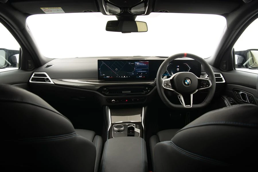 ห้องโดยสารของบีเอ็มดับเบิลยู M340i xDrive ใหม่ ให้บรรยากาศเรียบหรูและมุ่งเสริมประสบการณ์การขับขี่ให้เข้มข้นและถึงใจที่สุด ด้วยเพดาน M headliner สีดำ Anthracite อุปกรณ์ภายในที่ตกแต่งด้วยชุดแต่ง M Carbon Fibre เบาะนั่งแบบสปอร์ตด้านหน้า พร้อมพวงมาลัยหนัง M ที่มีเครื่องหมายสีแดงที่ตำแหน่ง 12 นาฬิกา และแผงหน้าปัดแบบ Luxuryซึ่งหุ้มด้วยวัสดุ Sensatec พร้อมแต่งพื้นผิวให้เนี้ยบยิ่งขึ้นด้วยตะเข็บในสีตัดกัน ส่วนหน้าจอ BMW Live Cockpit Professional เปิดให้เข้าถึงการควบคุมและตั้งค่าต่าง ๆ ของรถอย่างง่ายดาย รวมถึงความบันเทิงผ่านระบบเสียงเซอร์ราวด์ Harman Kardon และฟังก์ชันช่วยการขับขี่ต่าง ๆ