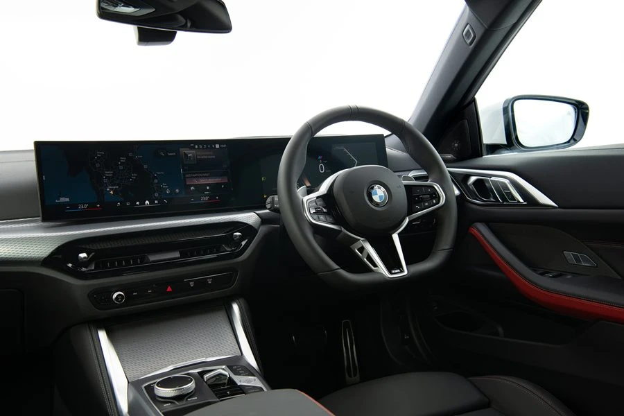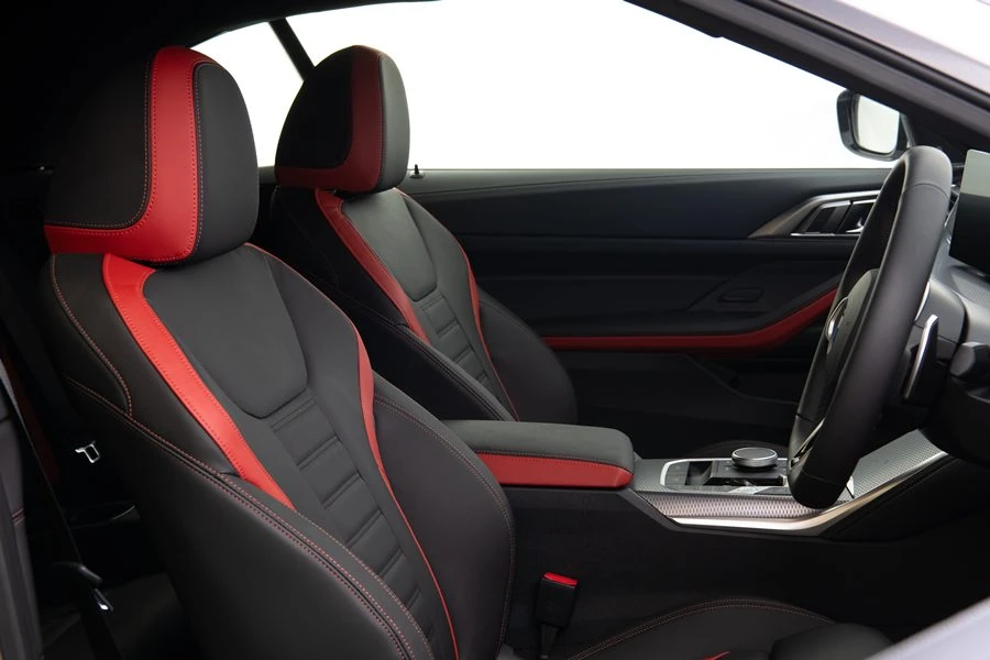 ภายในห้องโดยสาร ทั้งสองรุ่นยังเสิร์ฟบรรยากาศความสปอร์ตต่อเนื่อง เริ่มจากเบาะหลังแบบแยกที่นั่งที่ช่วยให้ผู้โดยสารด้านหลังสนุกไปกับการโลดแล่นบนท้องถนนได้เหมือนกับผู้โดยสารเบาะหน้า ส่วนวัสดุตกแต่งภายในก็ปรับเปลี่ยนใหม่ทั้งสองรุ่น ด้วยผิวแบบ Aluminium Fine Brushed ในรุ่น 420i และ M Carbon Fibre ในรุ่น 430i นอกจากนี้ บีเอ็มดับเบิลยู 430i Coupe M Sport ยังเสริมความหรูภายในไปอีกขั้นด้วยเบาะหนัง Vernasca แต่งสีดำ/แดง หรือ Mocha พร้อมเบาะแบบ lumbar support สำหรับเบาะหน้า และระบบเสียงเซอร์ราวด์จาก Harman Kardon