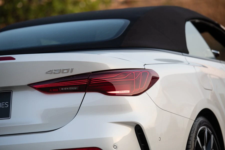 งานออกแบบทั้งภายนอกและภายในของบีเอ็มดับเบิลยู 430i Convertible M Sport ใหม่ ล้วนเป็นการนำแนวคิดจากรุ่นคูเป้มาตีความใหม่ในสไตล์เปิดประทุน รุ่นเปิดประทุนนี้มาพร้อมกับล้ออัลลอยน้ำหนักเบา M ขนาด 19 นิ้ว แบบ Double Spoke สองสีเช่นเดียวกับรุ่นคูเป้ ส่วนตัวถังโฉบเฉี่ยวด้วยชุดแต่ง M Sport และ M high-gloss Shadowline ที่ด้านข้าง พร้อมไฟหน้าแบบ Adaptive LED