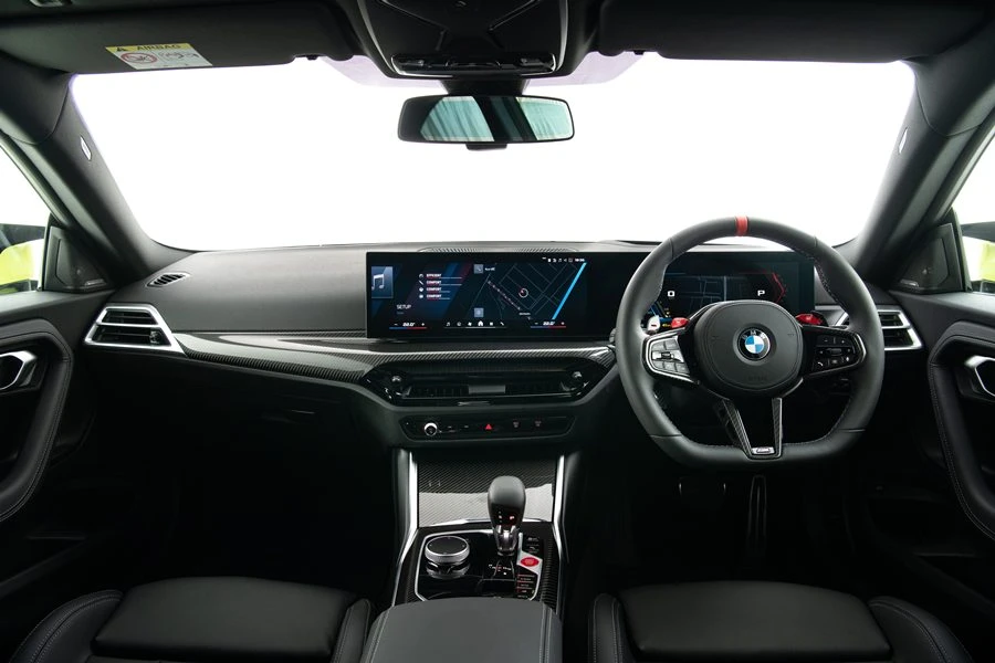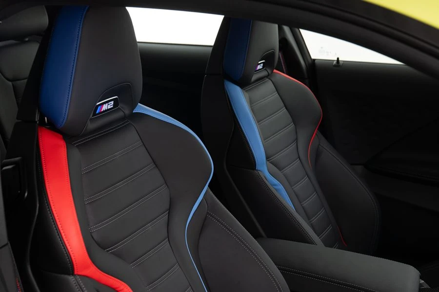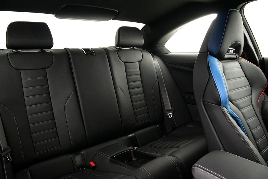 เมื่อก้าวเข้าสู่ห้องโดยสาร ผู้ขับขี่ก็จะได้พบกับพวงมาลัยคาร์บอนแบบท้ายตัดและชุดแป้นเกียร์ด้านหลัง พร้อมมอบความแม่นยำสูงสุดในการควบคุมในลุคที่เข้ากันอย่างลงตัวกับเบาะนั่ง M Sport ชุดแต่ง M Carbon Fibre ภายใน และไฟสัญลักษณ์ M ที่มือจับประตูที่ช่วยเสริมบรรยากาศของความแรงสไตล์ M ไปอีกขั้น ส่วนรุ่น M Racetrack ตัวท็อป เปลี่ยนเบาะหน้าเป็นแบบ M Carbon bucket seat ที่ให้ความกระชับสูงสุด สำหรับระบบช่วยการขับขี่และการควบคุมทั่วไปนั้น M2 ทั้ง 3 รุ่น มีแพ็คเกจ BMW Live Cockpit Professional ติดตั้งมาเป็นอุปกรณ์มาตรฐาน รวมถึงระบบช่วยเหลือผู้ขับขี่แบบครบชุด
