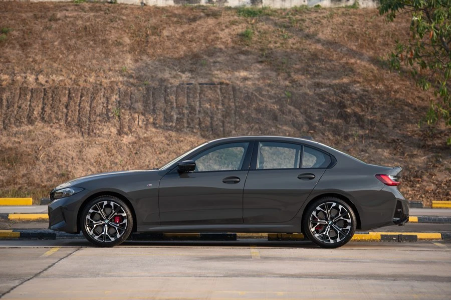 ส่วนด้านข้าง มีซุ้มล้อที่ดูบึกบึนคู่กับขอบประตูล่างที่ยื่นออกเล็กน้อย ล้อมกรอบล้ออัลลอย M น้ำหนักเบา ขนาด 19 นิ้ว (หน้า) / 20 นิ้ว (หลัง) แบบ double-spoke ซึ่งมีให้เลือกทั้งสีเงิน สองสี และสีดำ Jet Black ส่วนกันชนท้ายมาพร้อมดิฟฟิวเซอร์สไตล์รถแข่งและชุดท่อไอเสียคู่สีดำ ตบท้ายลุคสปอร์ตแบบพร้อมลงสนามแข่งด้วยหลังคาแบบคาร์บอน