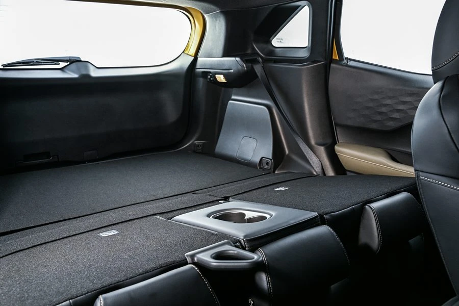 - ห้องโดยสารขนาดใหญ่ที่สุดในรถระดับเดียวกัน พื้นที่เหนือศีรษะ พื้นที่หัวไหล่ และพื้นที่วางขาที่กว้าง ทำให้สามารถเดินทางได้พร้อมกันถึง 5 คน โดยไม่รู้สึกอึดอัด เบาะนั่งตอนหลังสามารถพับปรับแบบ 40:20:40 และปรับเอนได้ถึง 8 ระดับ พร้อมด้วยวัสดุหุ้มเบาะ “Heat Guard” ที่ช่วยสะท้อนความร้อนจากแสงแดด