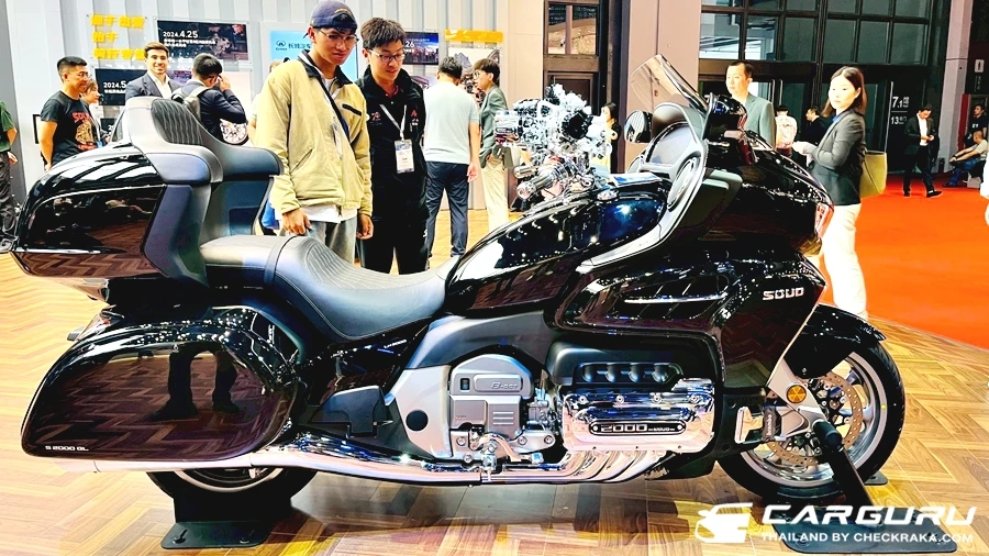 GWM SOUO เรียกว่าเป็น Touring Bike คันใหญ่ ที่ทรงคุ้มตา ซึ่งไม่แปลกครับ เพราะเค้าคุยกับต้นฉบับเรียบร้อย และยังจ้างโรงงานเดียวกันในประเทศจีนผลิตให้! แต่ในความเหมือน ย่อยมีความแตกต่าง เริ่มที่ ขุมพลังแบบ Flat-8 หรือ 8 สูบ นอนยัน BOXER ความจุ 2,000 ซีซี เสียงหวานนุ่มดุดันในตัว พร้อมเทคโนโลยีต่าง ๆ มากมาย เรียกได้ว่า แทบจะยกมาจากรถยนต์มาใส่ในรุ่นนี้แบบจัดเต็ม