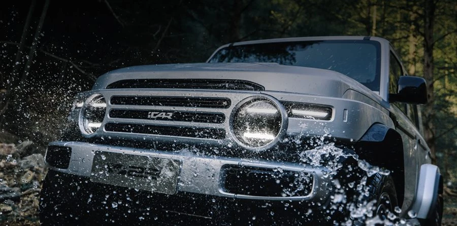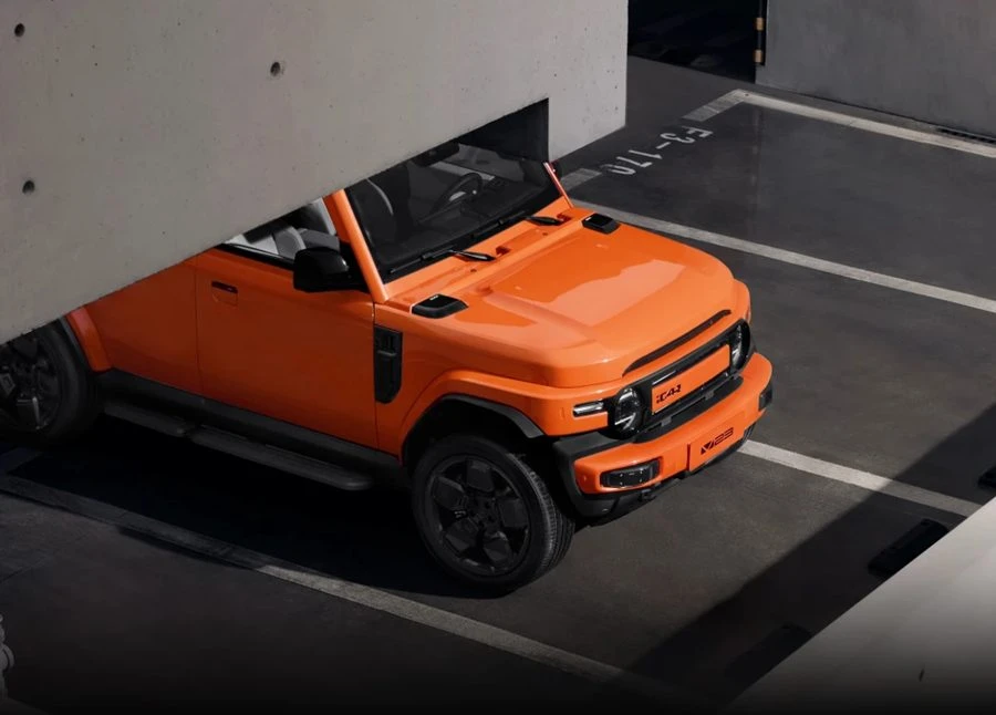 CHERY iCAR V23 มีสไตล์คล้าย Land Rover Defender, Mercedes G-Class หรือแม้แต่ Tank 300 และ FJ Cruiser แต่ย่อส่วนลงมาให้ขับในเมืองได้ง่าย โดยยังคงบุคลิกของรถลุยไว้ เช่น ระยะโอเวอร์แฮงค์สั้น (หน้า-หลัง) มุมไต่ 43 องศา มุมจาก 41 องศา พร้อมรูปทรงกล่องมินิมัลที่ดึงดูดสายตา