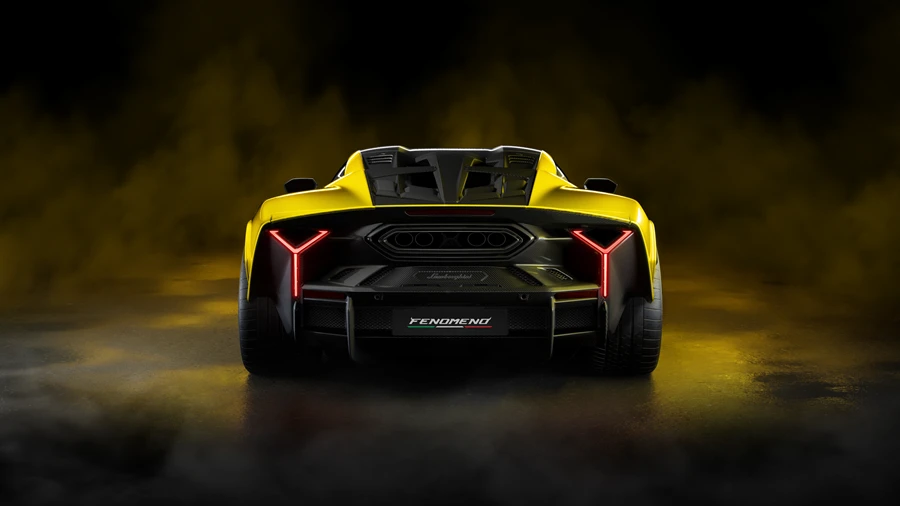 เมื่อมองจากด้านหลัง จะเห็นว่า Fenomeno เป็นรถยนต์ที่ไม่มีรุ่นใดเทียบได้ในประวัติศาสตร์การออกแบบของลัมโบร์กินี ด้วยเส้นสายที่ต่อเนื่องเชื่อมโยงระหว่างปีกและซุ้มล้อ ช่วยแบ่งขอบเขตระหว่างตัวถังรถและส่วนท้ายให้เห็นอย่างชัดเจน รวมถึงเอกลักษณ์เฉพาะตัวของไฟส่องสว่างอันล้ำสมัย การตีความตัวอักษร Y อันเป็นเอกลักษณ์ในแนวตั้ง ซึ่งเชื่อมโยงองค์ประกอบคาร์บอนไฟเบอร์ของดิฟฟิวเซอร์เข้ากับเส้นสายหกเหลี่ยมที่เด่นชัดของครอบปลายท่อไอเสีย