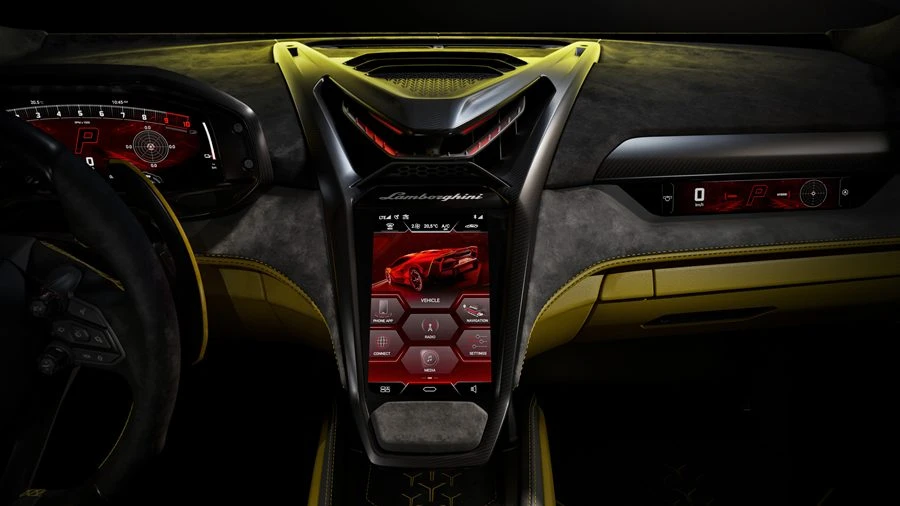 ภายในห้องโดยสารสะท้อนถึงแนวคิดไฮเปอร์ดีไซน์ นำเสนอการตีความใหม่ตามปรัชญา “Feel like a pilot” ของลัมโบร์กินี เพื่อสร้างความเชื่อมโยงกับตัวรถอย่างลึกซึ้งมากขึ้นทั้งสำหรับผู้ขับขี่และผู้โดยสาร การวางตำแหน่งผู้ขับและพวงมาลัยสไตล์รถแข่งจะมอบประสบการณ์การขับขี่สุดประทับใจ พร้อมจอแสดงผลดิจิทัล 3 จอ ซึ่งไม่เพียงแต่ตอบโจทย์แนวมินิมอลลิสต์ได้อย่างมีสไตล์เท่านั้น แต่ยังตัดปุ่มควบคุมส่วนใหญ่ออกไป เพื่อให้ผู้ขับขี่มีสมาธิกับท้องถนนหรือสนามแข่งขันได้อย่างเต็มที่ เสมือนกำลังขับขี่รถแข่งของจริง