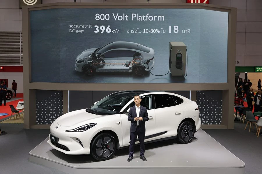 บริษัท เอสเอไอซี มอเตอร์ – ซีพี จำกัด และ บริษัท เอ็มจี เซลส์ (ประเทศไทย) จำกัด ผู้ผลิตและผู้จำหน่ายรถยนต์เอ็มจีในประเทศไทย เปิดตัว NEW MG IM6 Premium LONG RANGE รุ่นย่อยล่าสุดที่เข้ามาเติมเต็มในกลุ่มพรีเมียมอีวีกับจุดเด่น “ชาร์จไวกว่าและวิ่งไกลสุดในคลาส” โดยสามารถวิ่งได้ระยะทางสูงสุดที่ 750 กิโลเมตรต่อการชาร์จหนึ่งครั้งตามมาตรฐาน NEDC พร้อมชาร์จไวกว่าด้วยเทคโนโลยีขับเคลื่อนแรงดันไฟฟ้า 800 โวลต์ รองรับการชาร์จไฟกระแสตรง (DC) สูงสุด 396 kW สามารถชาร์จจาก 10-80% ได้ภายในเวลาเพียง18 นาที ในราคาพิเศษ 1,499,900 บาท โดยในงานยังมีข้อเสนอสุดพิเศษสำหรับยนตรกรรมครบทุกรุ่น เริ่มตั้งแต่วันนี้จนถึงวันที่ 31 สิงหาคม 2568 ณ บูธเอ็มจี หมายเลข A26 ฮอลล์ EH 102 ศูนย์นิทรรศการและการประชุมไบเทค บางนา