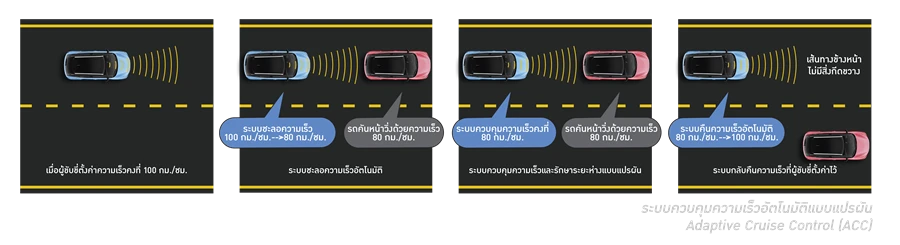 - ระบบควบคุมความเร็วอัตโนมัติแบบแปรผัน Adaptive Cruise Control (ACC)